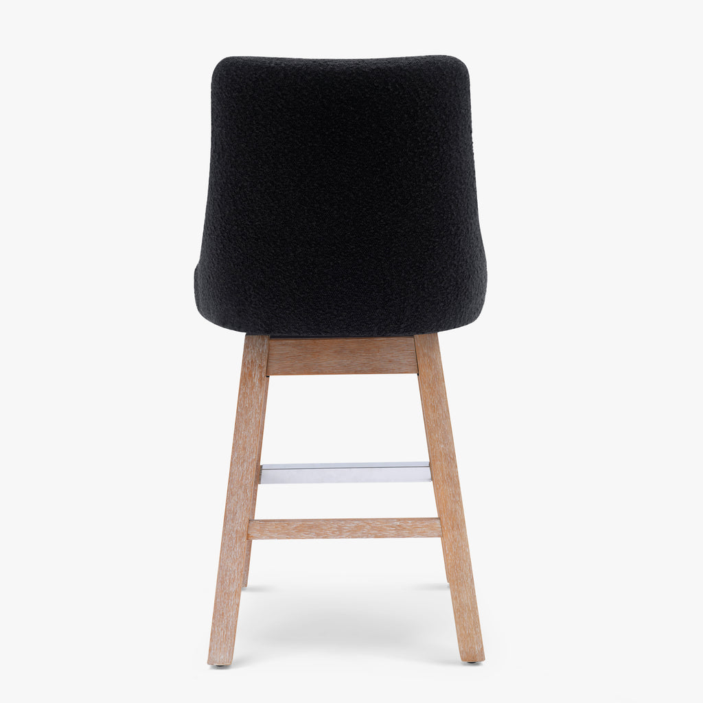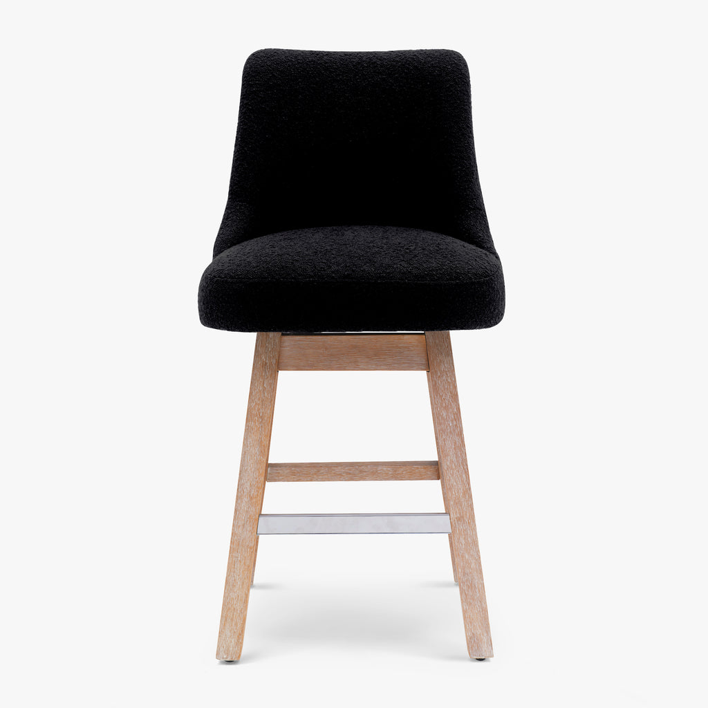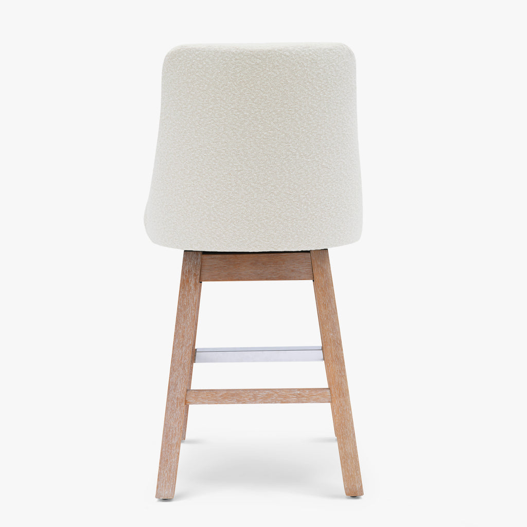 Immerse your farmhouse kitchen in sophistication with our Boucle fabric counter stool, tailored for the enjoyment of the entire family. The antique-stained wood legs radiate rustic charm, while the water- and stain-resistant upholstery ensures easy cleanups, tailored for the demands of family life. Crafted from sturdy rubberwood and featuring a generously padded poly foam seat, this stool seamlessly combines durability with lavish comfort—perfect for vibrant family gatherings. The thoughtfully designed silhouette, coupled with the convenient 360-degree swivel feature, transforms sitting into a pleasure for everyone, encouraging seamless movement. Adding to its appeal, the metal plate on the front footrest brings a touch of refinement and practicality, creating a family-friendly and tastefully stylish addition. Enhance your kitchen atmosphere with this indulgent and tasteful counter stool, effortlessly meeting your family's everyday seating needs.
