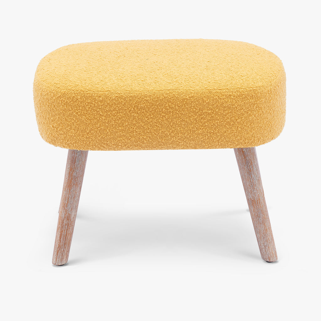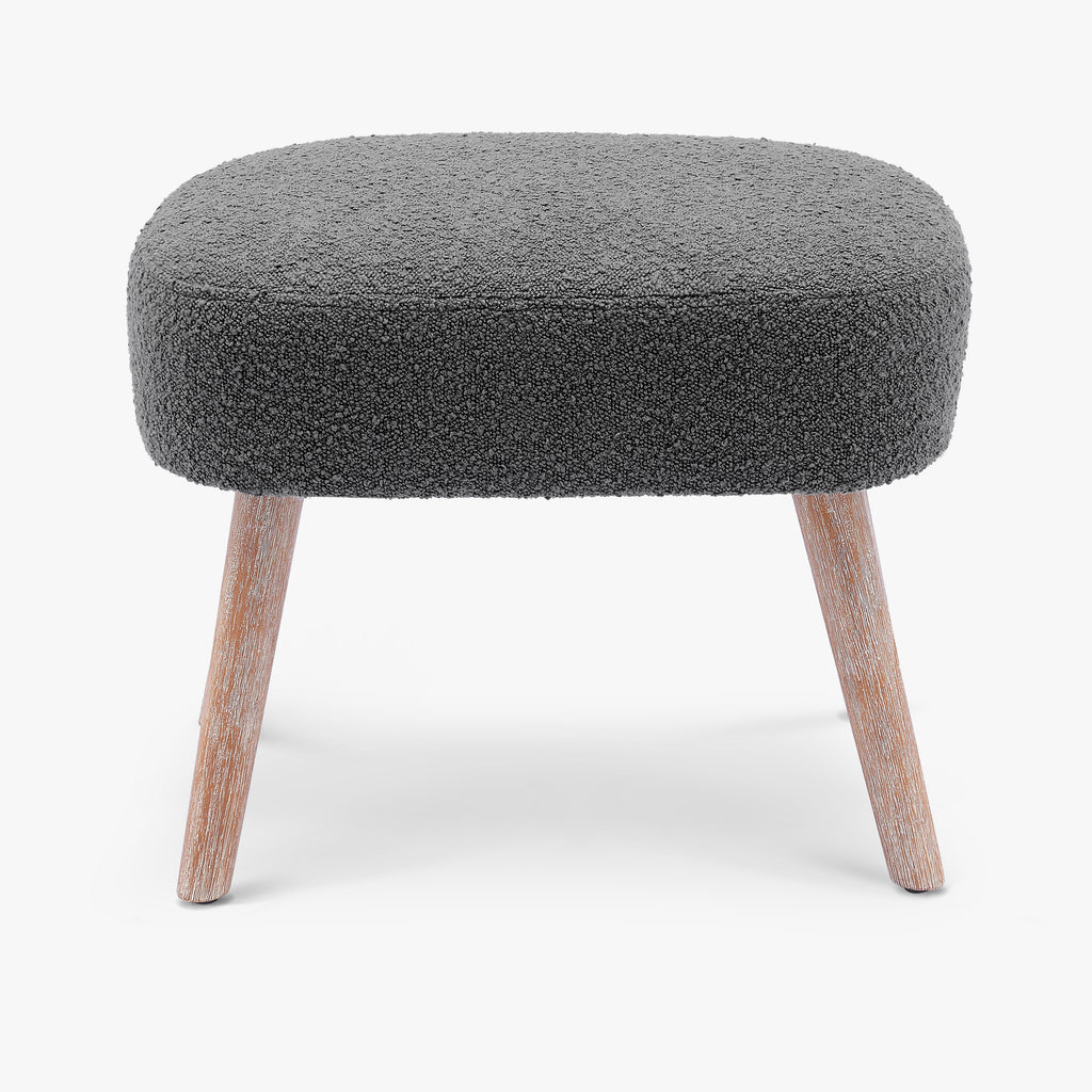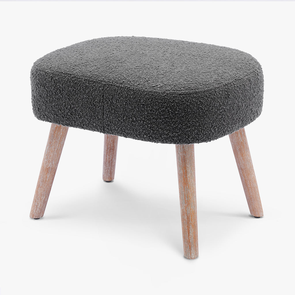 Unwind and decompress after a long day with our alluring 16" high ottoman, which is ideal for relaxing. crafted for comfort and longevity, upholstered with a water- and stain-resistant treated polyester boucle fabric that rests on a sturdy sinuous spring that helps maintain the foam-filled cushion shape by preventing sagging and distributing the weight evenly among the ottoman, all rest on a solid wood frame, ensuring the ottoman's longevity. from masterfully crafted upholstery to the splayed leg design, solid wood legs that not only add charm but also stability with the leg's splayed design and have a beautiful antique finish complete the ottomans' charm.