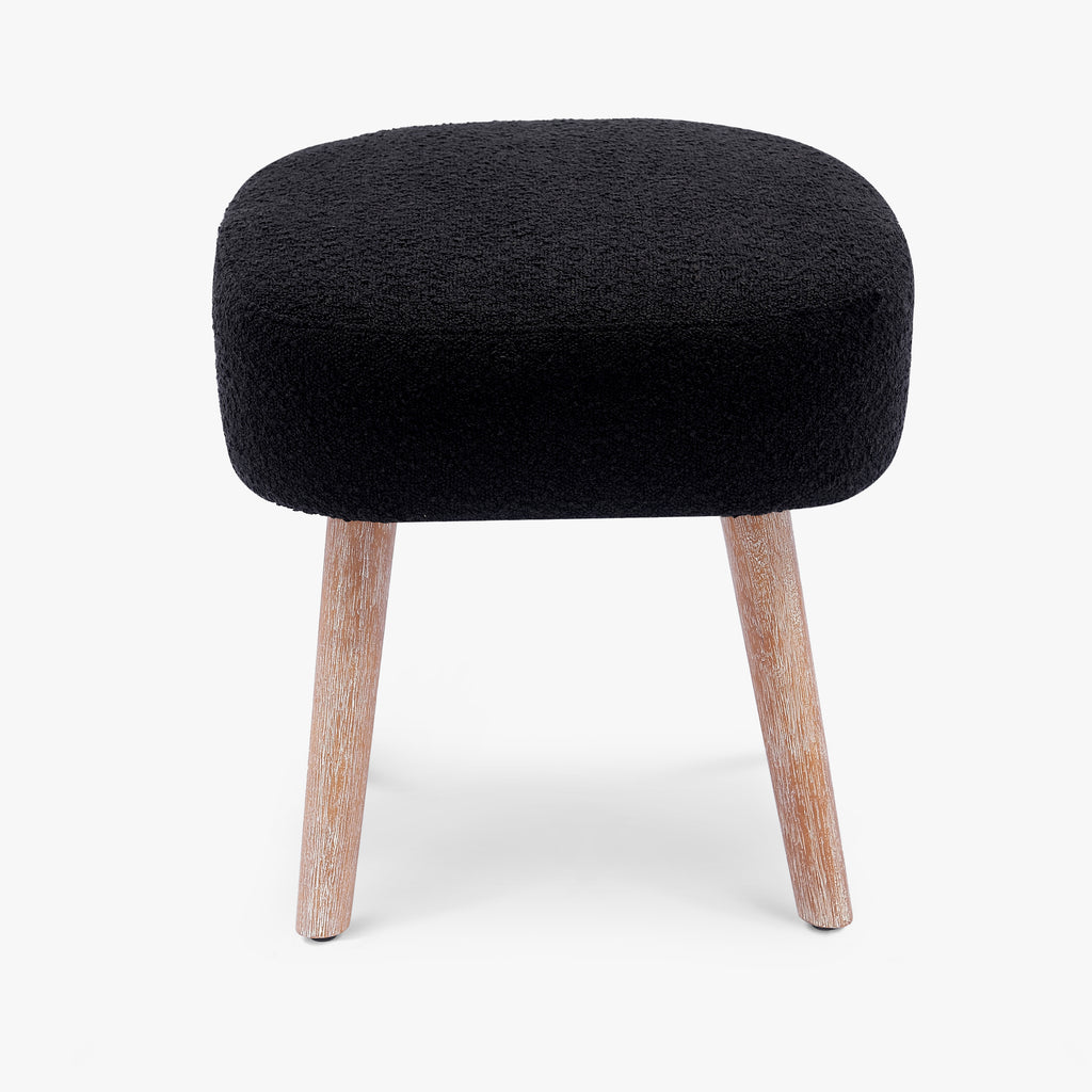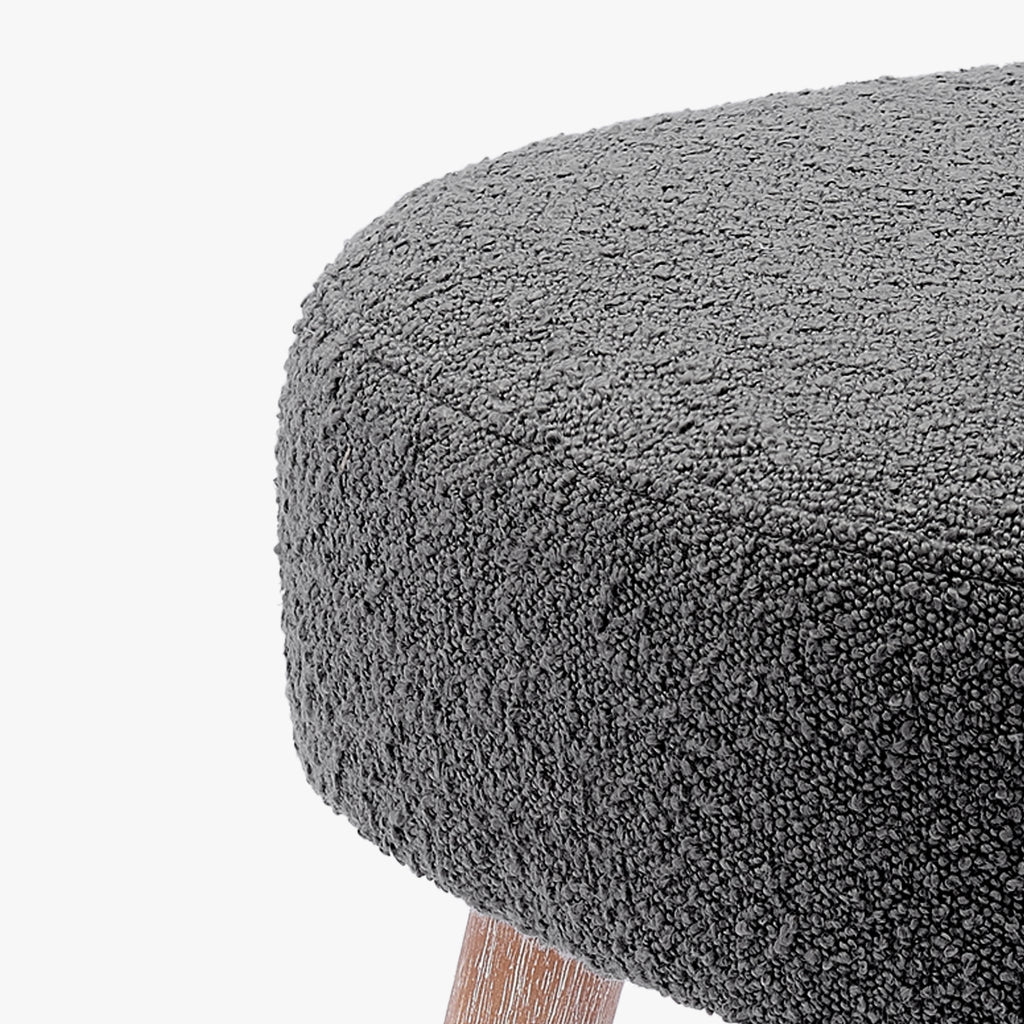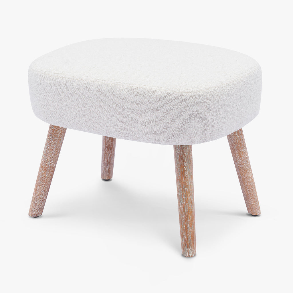 Unwind and decompress after a long day with our alluring 16" high ottoman, which is ideal for relaxing. crafted for comfort and longevity, upholstered with a water- and stain-resistant treated polyester boucle fabric that rests on a sturdy sinuous spring that helps maintain the foam-filled cushion shape by preventing sagging and distributing the weight evenly among the ottoman, all rest on a solid wood frame, ensuring the ottoman's longevity. from masterfully crafted upholstery to the splayed leg design, solid wood legs that not only add charm but also stability with the leg's splayed design and have a beautiful antique finish complete the ottomans' charm.
