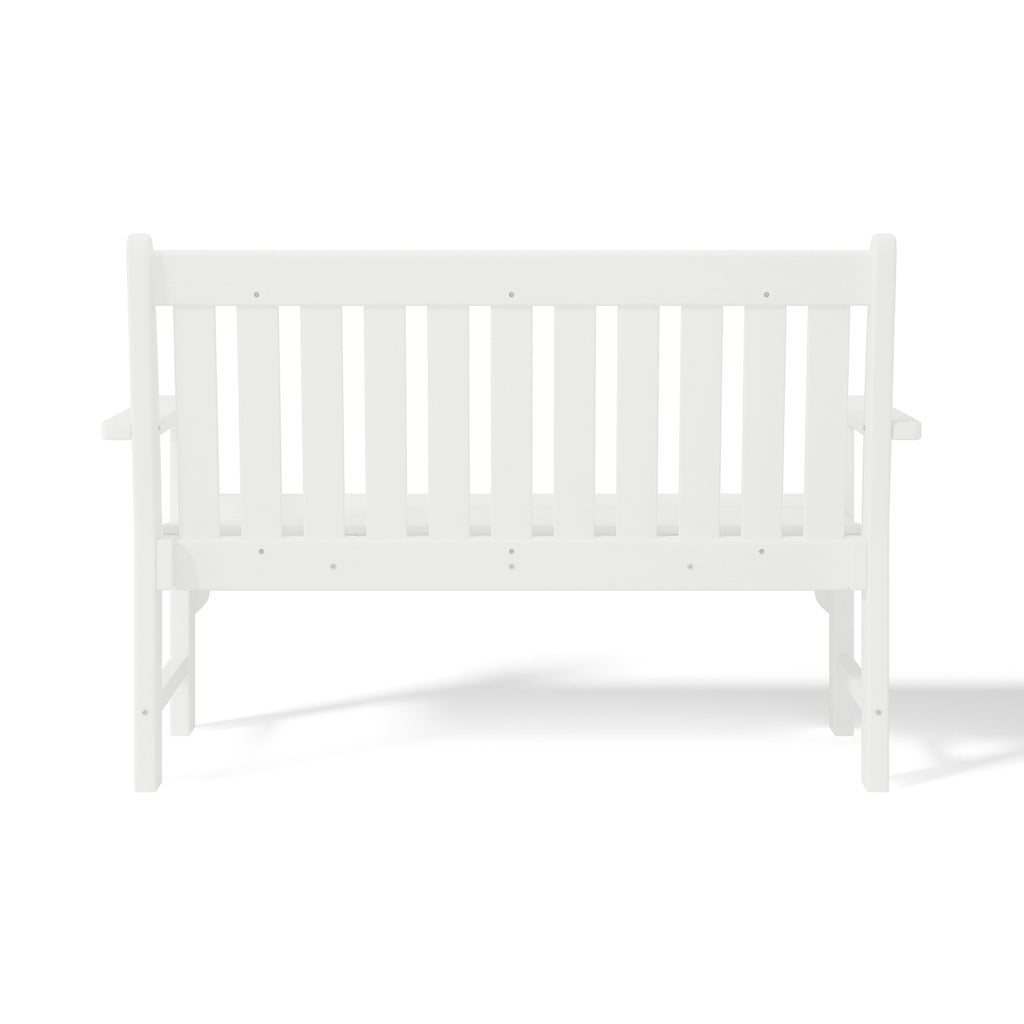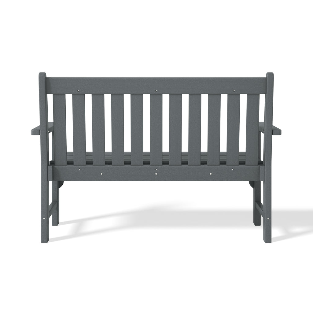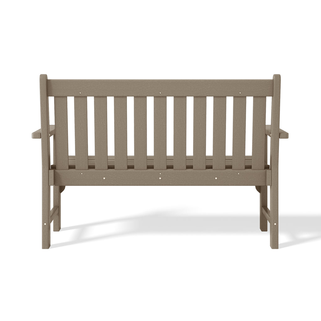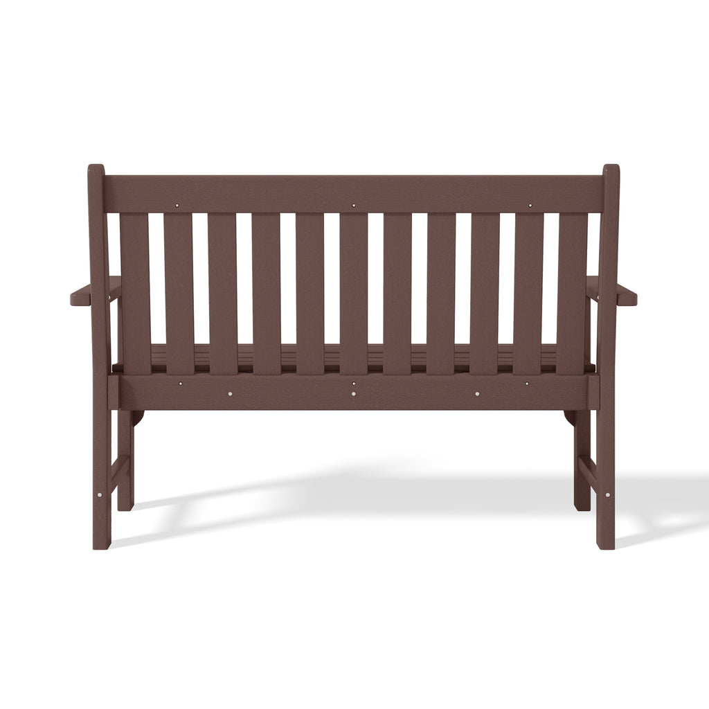 Add style and durability to your front porch with this HDPE garden bench, designed to withstand the elements. Made from high-density polyethylene, it resists fading, cracking, and warping, ensuring long-lasting beauty. The smooth, contoured seat offers comfort for relaxing or socializing. Its classic design and earthy tones complement any outdoor setting. Easy to maintain, this bench is the perfect combination of functionality and timeless appeal.