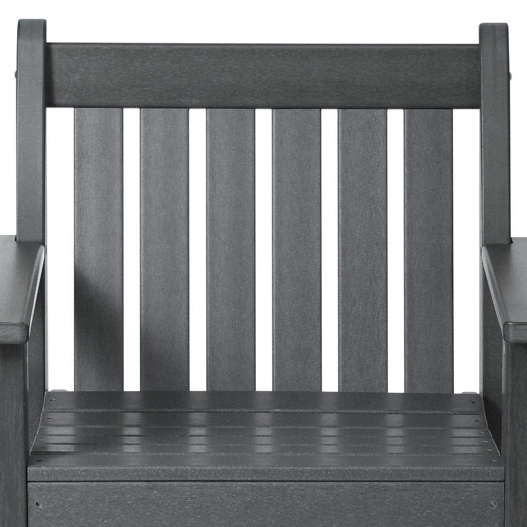 The perfect dining set for 4 that will add charm and comfort to your outdoor patio this season. Made with a durable HDPE material that is UV and fade resistant to the outdoors and will keep that charming color season-long. All-weather material is perfect to resist the strong outdoor elements and won't crack or splinter unlike other materials. Sit in comfort with the garden dining chairs that have contoured seats to relieve tension and make for a more comfortable seat and tied with the spacious 43" inch square dining table this will make the for the perfect outdoor dining patio set.