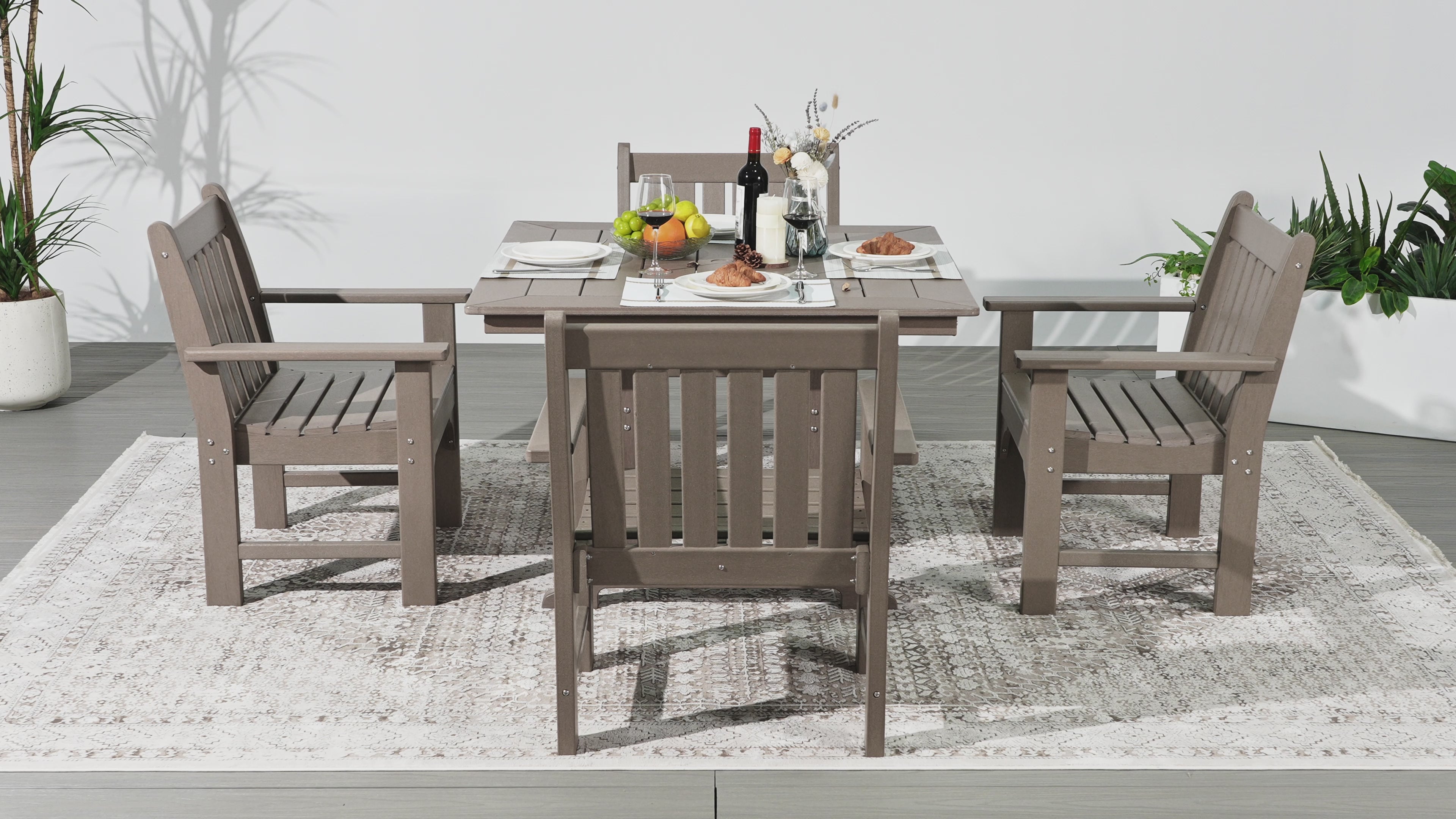 - Set Includes: Four (4) Patio Garden Dining Chairs and One (1) 43" Inch Square Dining Table