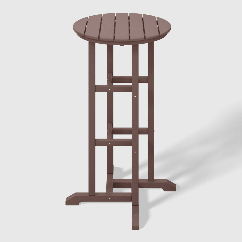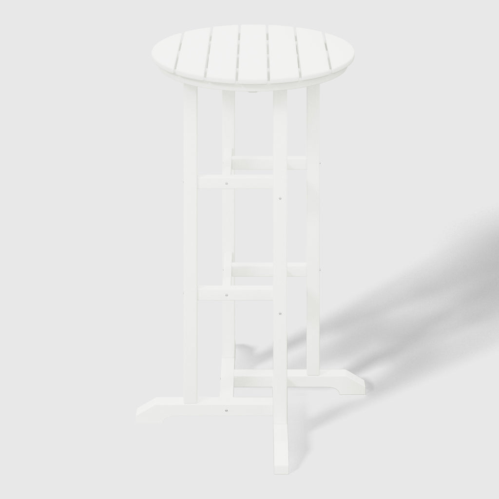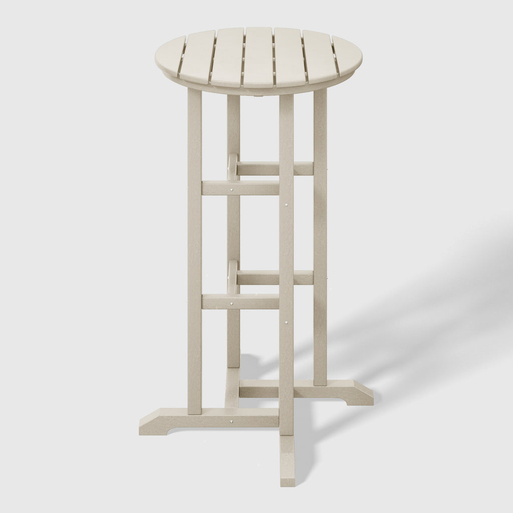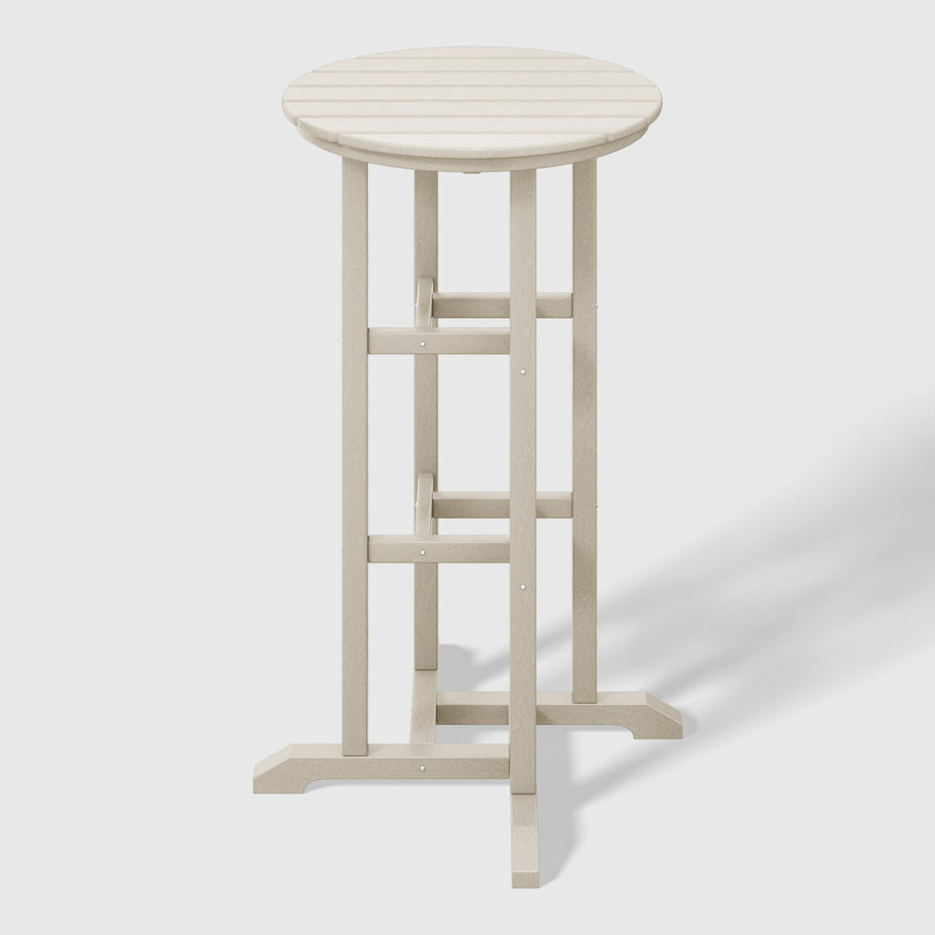 Elevate the ambiance of your outdoor patio with this 37" Round Outdoor Patio Counter Height Bar Pub Table. versatility extends from the outdoor bar area to the dining spot, promising a refined addition without overpowering the space. available in a selection of enduring colors, is thoughtfully crafted from robust HDPE material. Unlike wood, it avoids splintering, cracking, or peeling, ensuring a sophisticated yet comfortable setting. HDPE construction ensures heightened durability, complemented by UV-resistant and water-resistant features, making it a tasteful and enduring choice for your outdoor gatherings with friends.