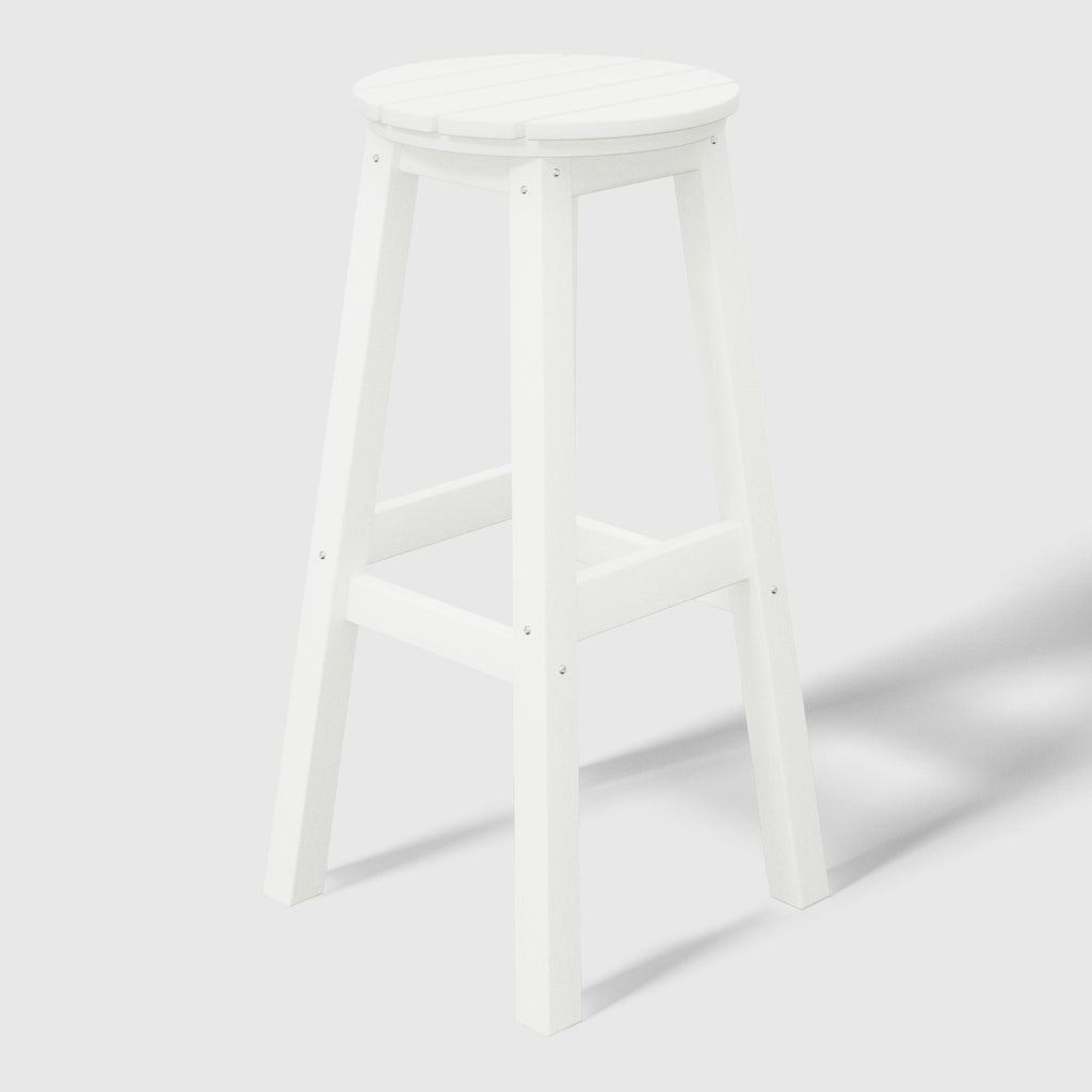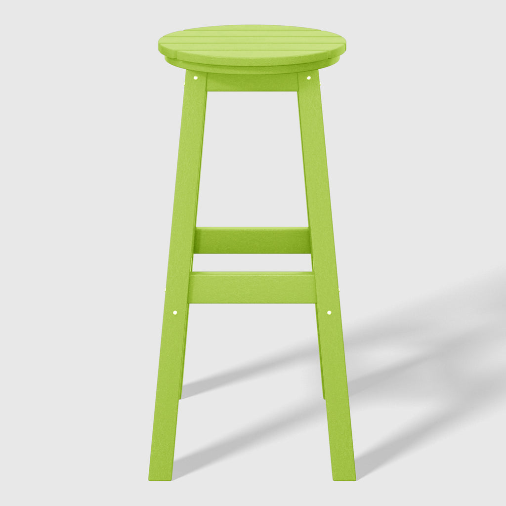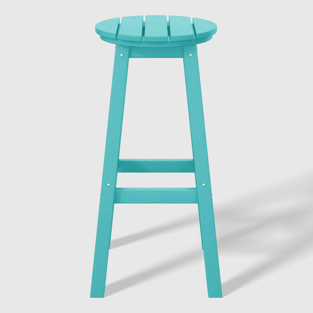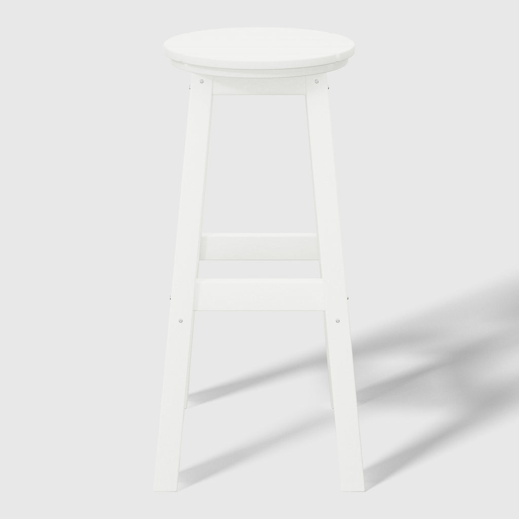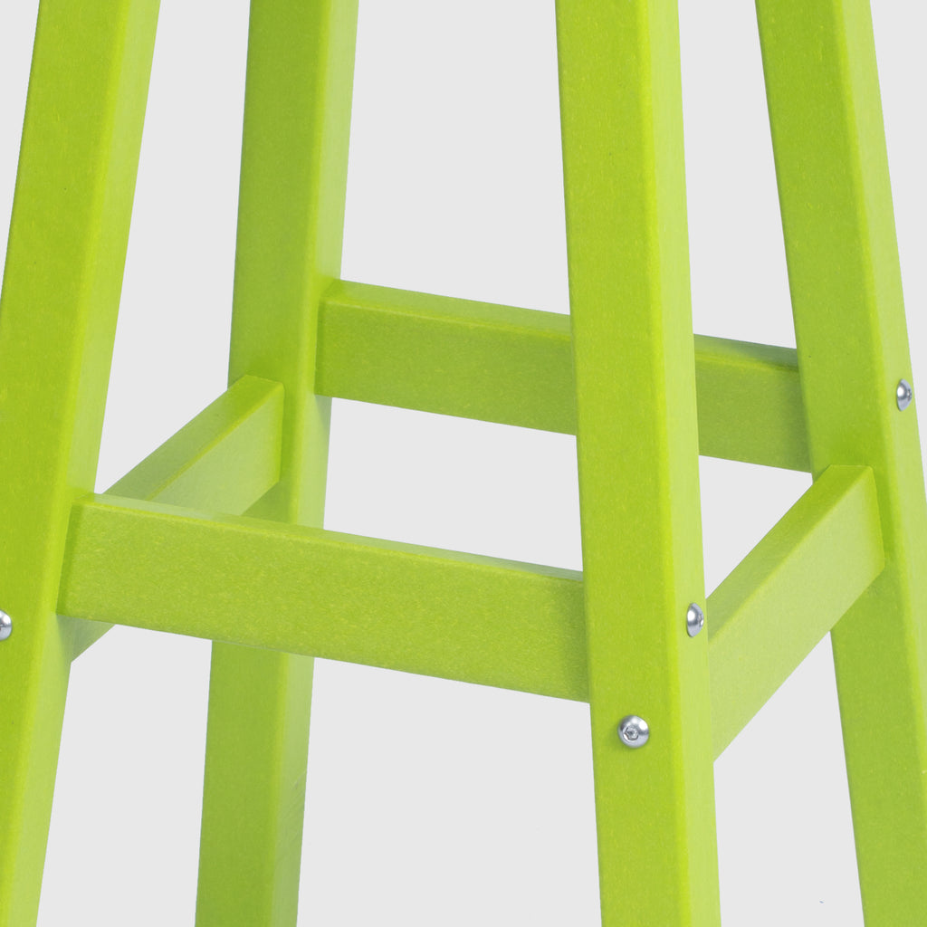 This 29" backless bar stool presents a sophisticated addition to your outdoor patio, ideally suited for placement around your outdoor patio bar or bistro table. Crafted from durable and recycled HDPE material, its design is tailored for outdoor use, boasting UV and weather-resistant properties that safeguard the stool. Available in a palette of fade-resistant solid colors, it ensures the enduring vibrancy of its charming hue each season. The backless design makes for seamless storage underneath the table, offering both versatility and elegance. The classic yet modern aesthetic effortlessly harmonizes with your existing decor, while the A-frame design, supported by four sturdy square legs and foot bars, provides a well-balanced and comfortable seating experience.