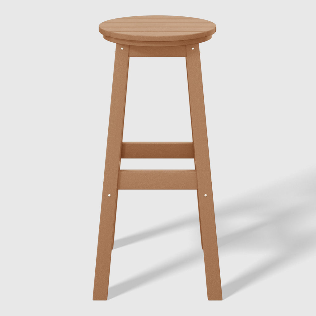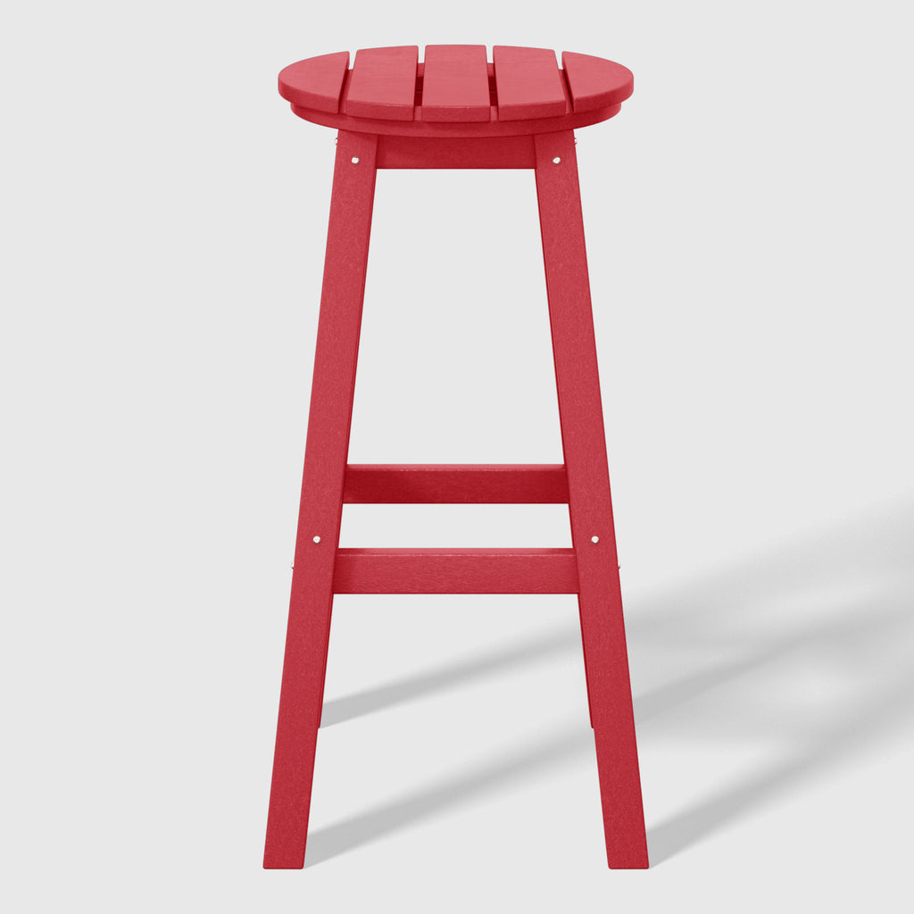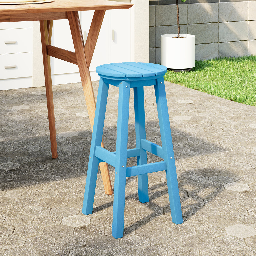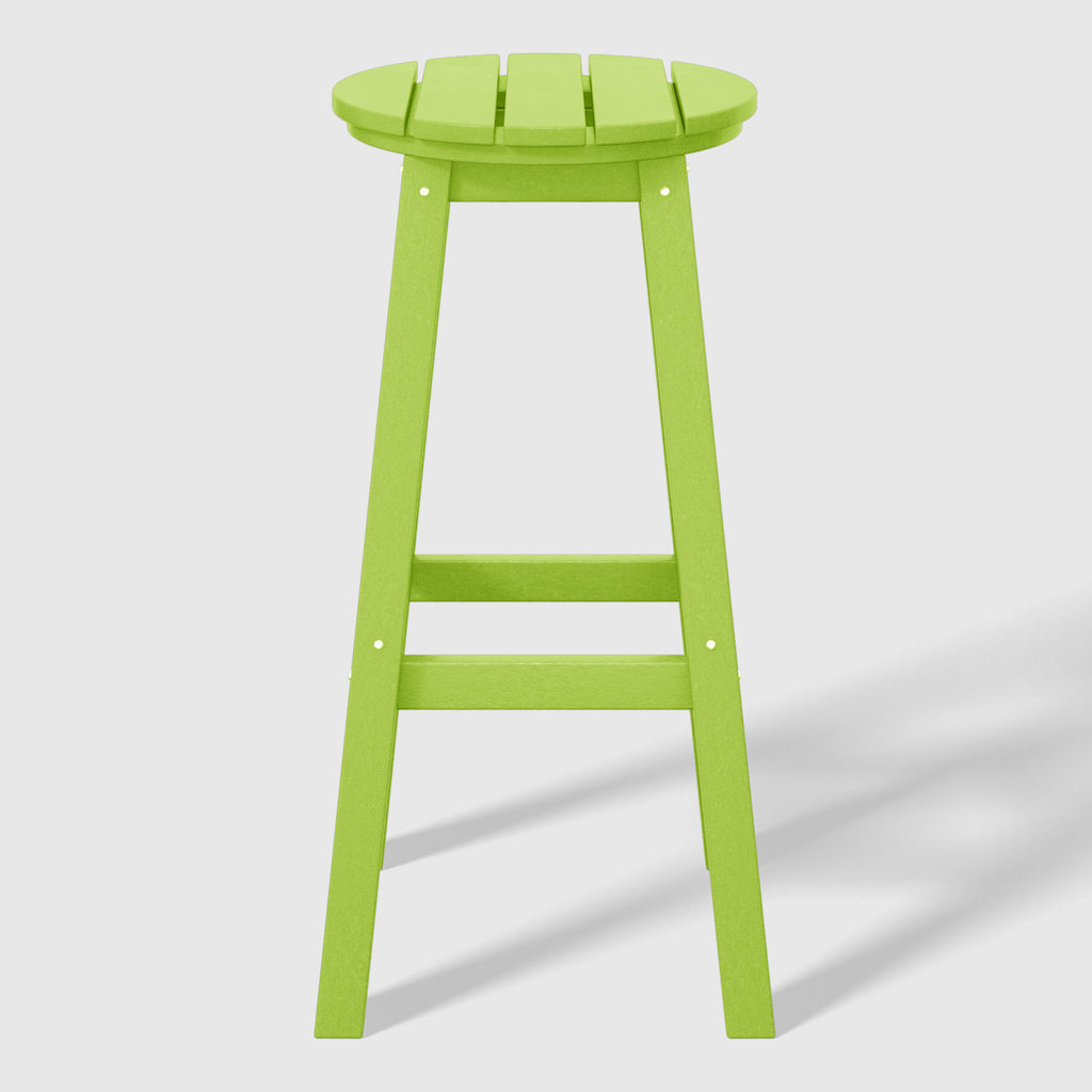 This 29" backless bar stool presents a sophisticated addition to your outdoor patio, ideally suited for placement around your outdoor patio bar or bistro table. Crafted from durable and recycled HDPE material, its design is tailored for outdoor use, boasting UV and weather-resistant properties that safeguard the stool. Available in a palette of fade-resistant solid colors, it ensures the enduring vibrancy of its charming hue each season. The backless design makes for seamless storage underneath the table, offering both versatility and elegance. The classic yet modern aesthetic effortlessly harmonizes with your existing decor, while the A-frame design, supported by four sturdy square legs and foot bars, provides a well-balanced and comfortable seating experience.