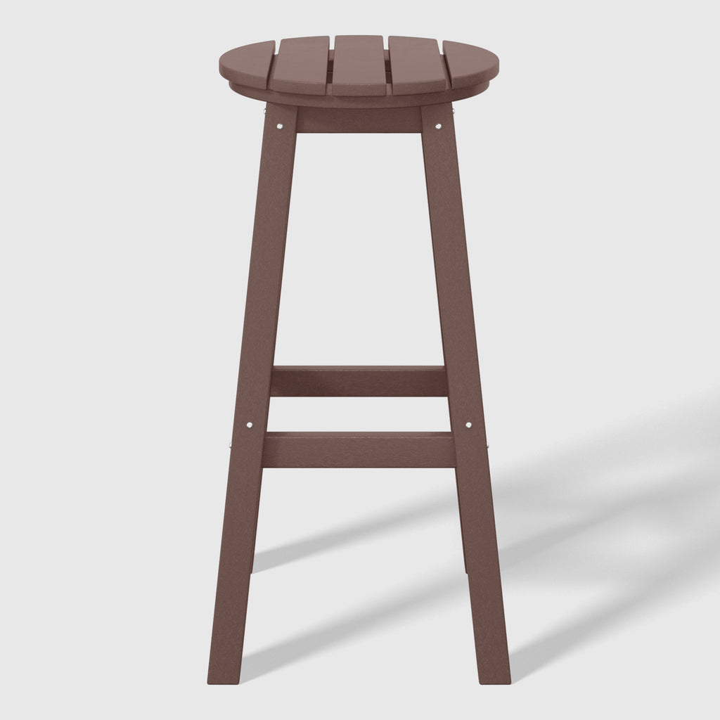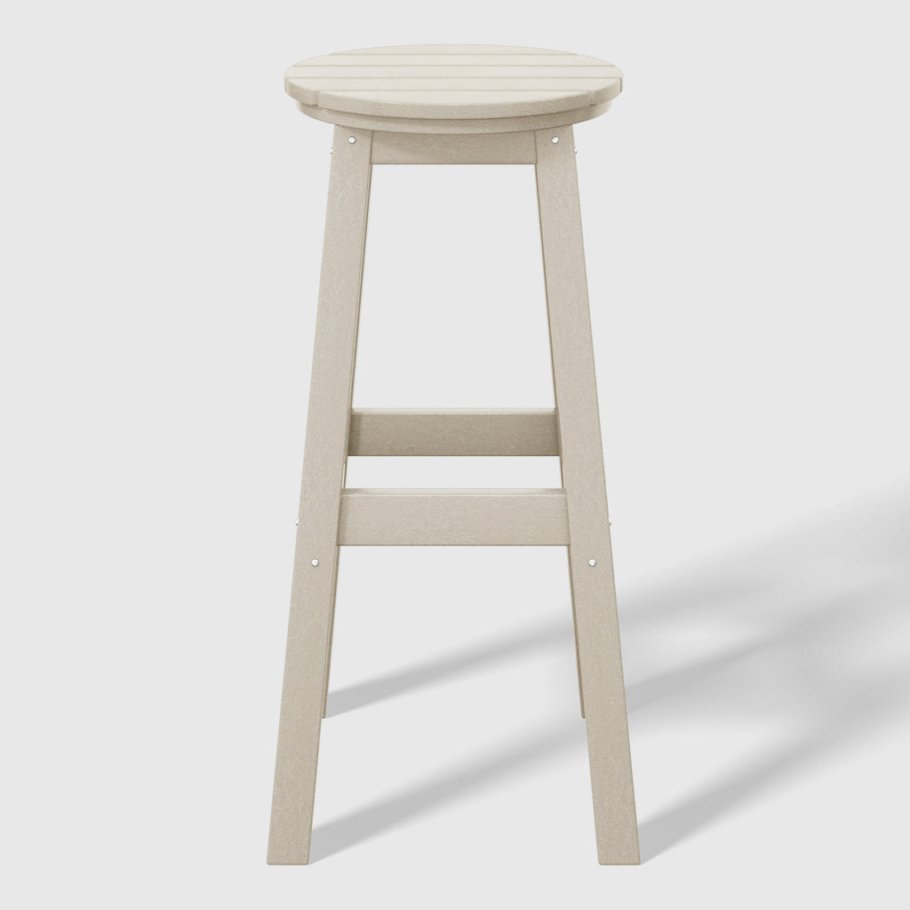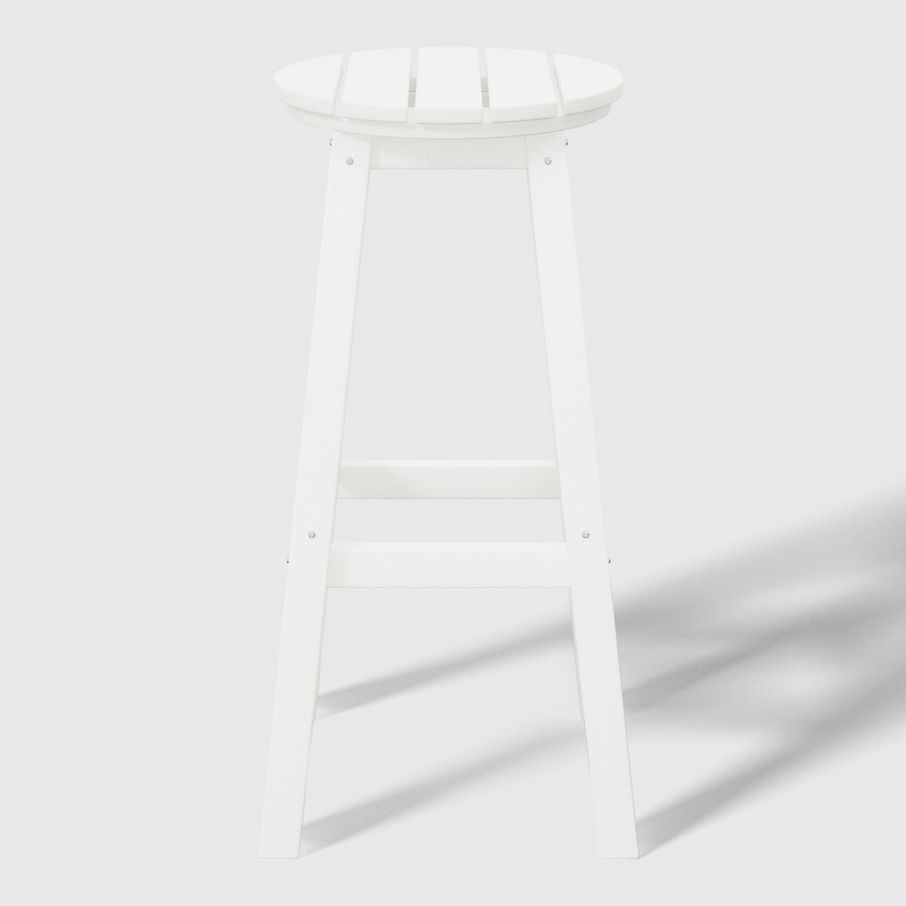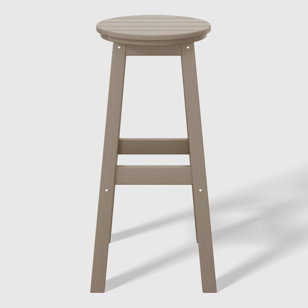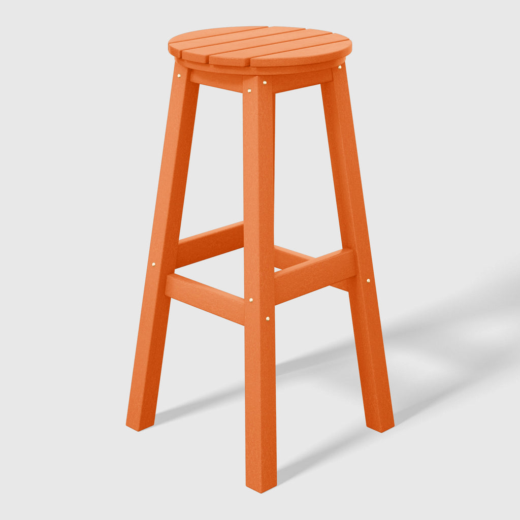 This 29" backless bar stool presents a sophisticated addition to your outdoor patio, ideally suited for placement around your outdoor patio bar or bistro table. Crafted from durable and recycled HDPE material, its design is tailored for outdoor use, boasting UV and weather-resistant properties that safeguard the stool. Available in a palette of fade-resistant solid colors, it ensures the enduring vibrancy of its charming hue each season. The backless design makes for seamless storage underneath the table, offering both versatility and elegance. The classic yet modern aesthetic effortlessly harmonizes with your existing decor, while the A-frame design, supported by four sturdy square legs and foot bars, provides a well-balanced and comfortable seating experience.