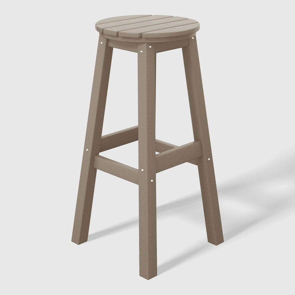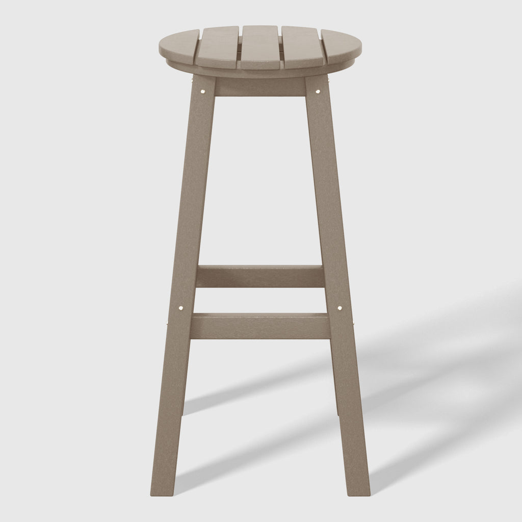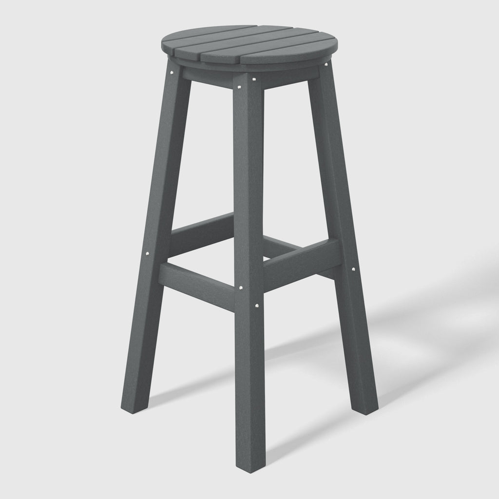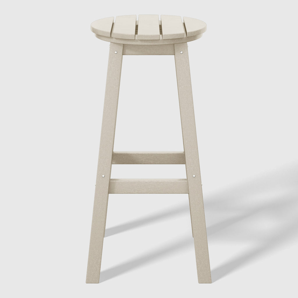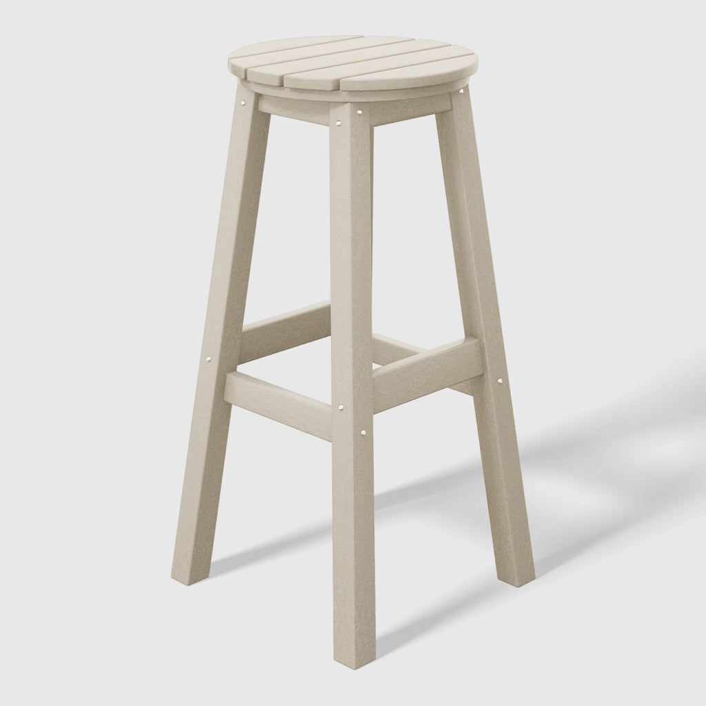 This 29" backless bar stool presents a sophisticated addition to your outdoor patio, ideally suited for placement around your outdoor patio bar or bistro table. Crafted from durable and recycled HDPE material, its design is tailored for outdoor use, boasting UV and weather-resistant properties that safeguard the stool. Available in a palette of fade-resistant solid colors, it ensures the enduring vibrancy of its charming hue each season. The backless design makes for seamless storage underneath the table, offering both versatility and elegance. The classic yet modern aesthetic effortlessly harmonizes with your existing decor, while the A-frame design, supported by four sturdy square legs and foot bars, provides a well-balanced and comfortable seating experience.