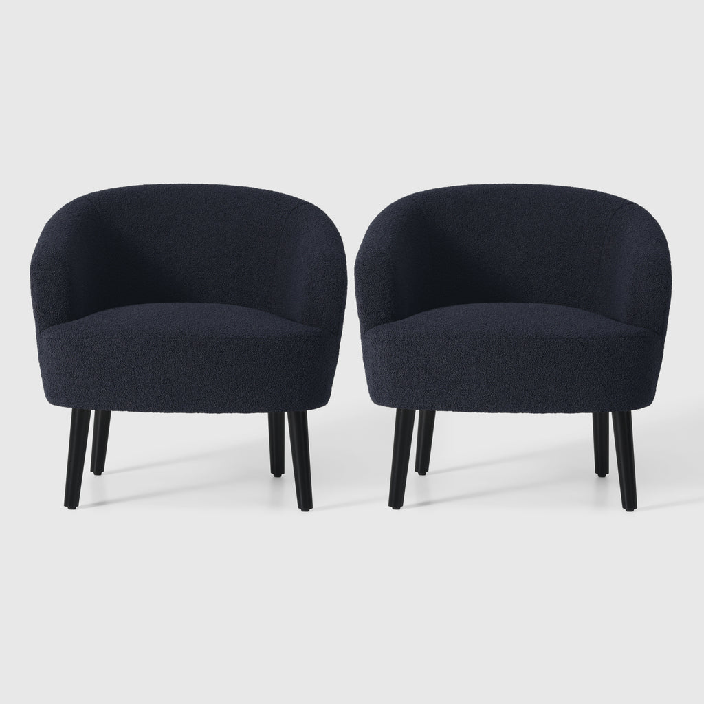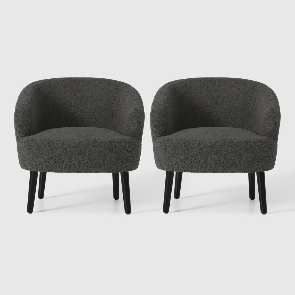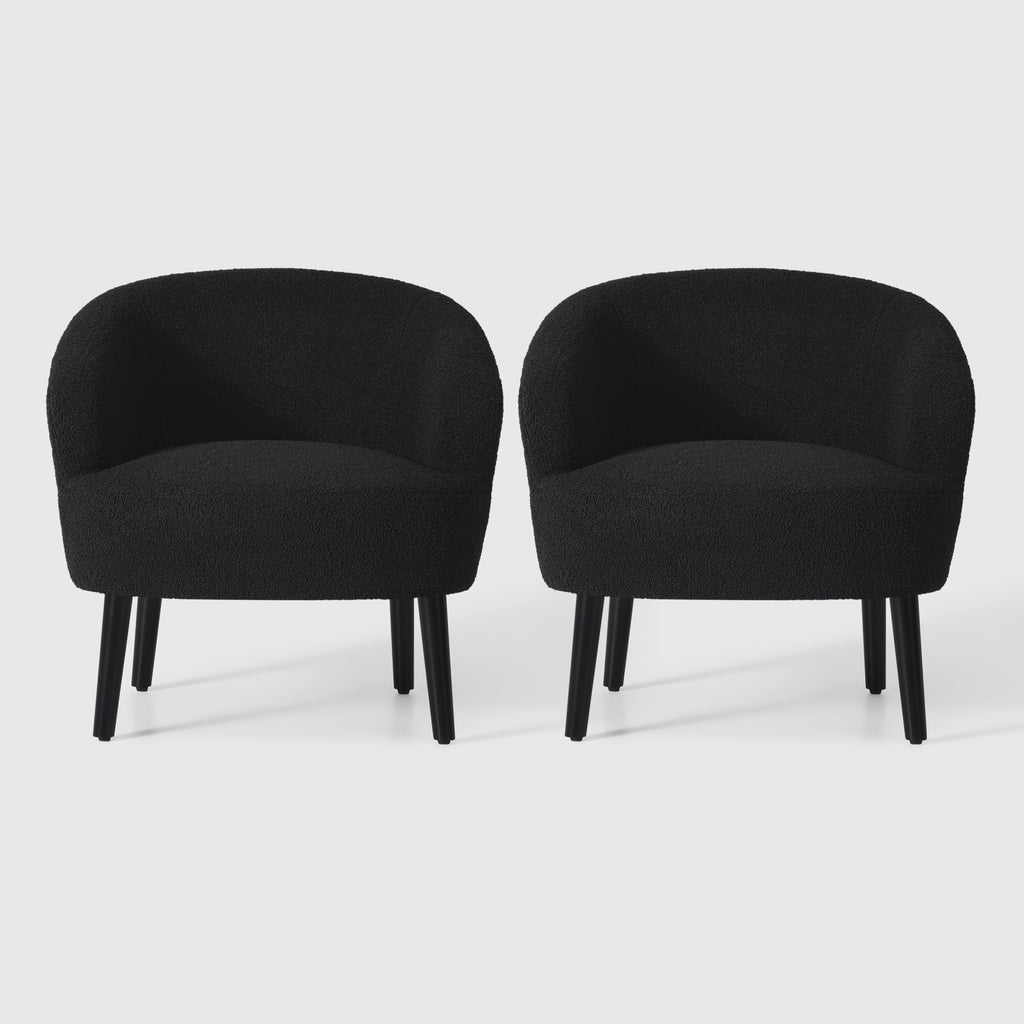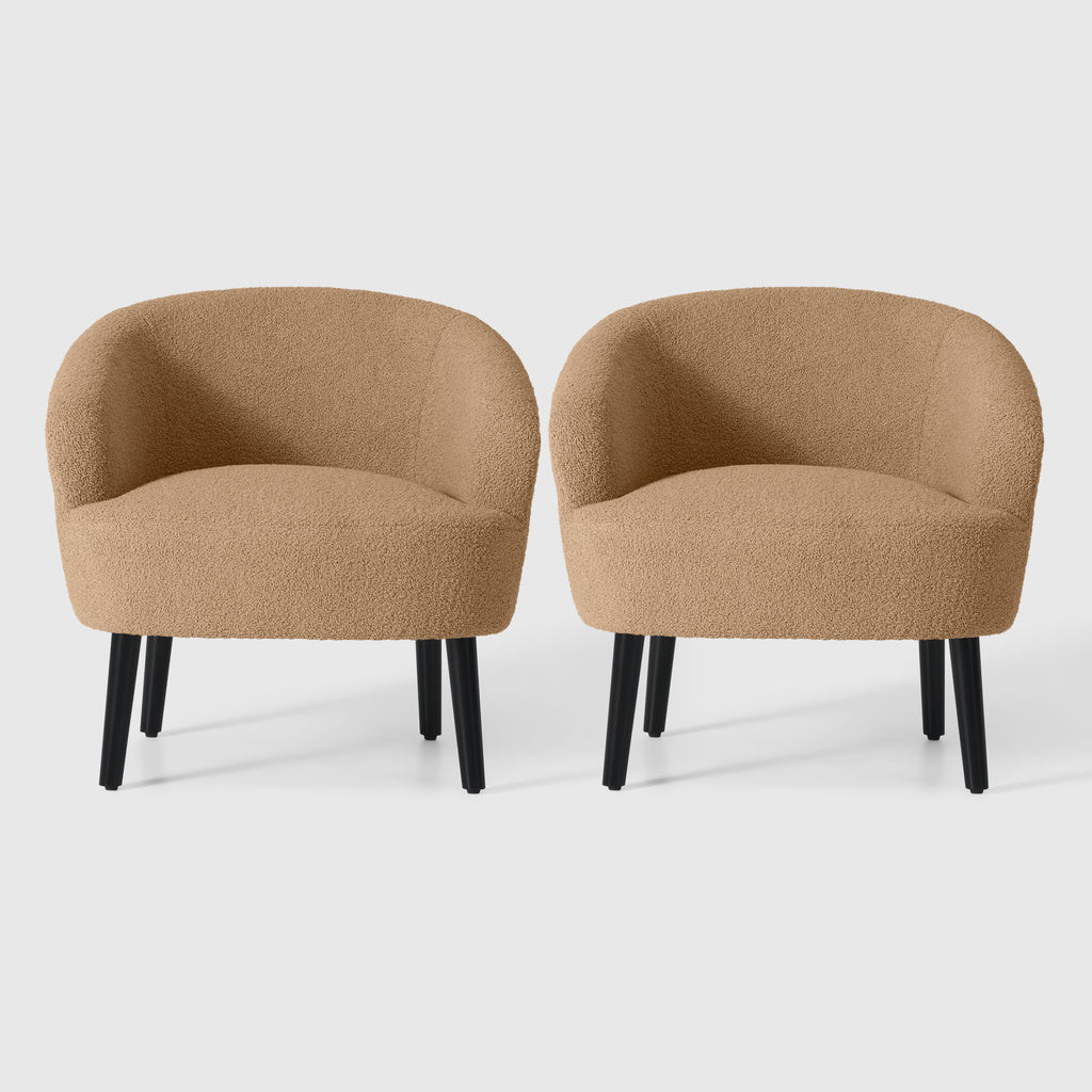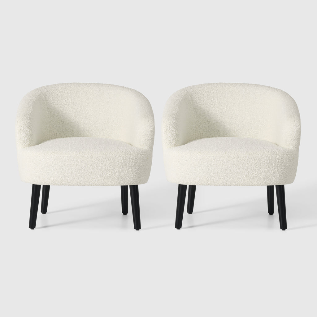 Indulge in the timeless elegance and supreme comfort of our Set of Two Mid-Century Sherpa Barrel Club Chair. drawing inspiration from the iconic designs of the mid-century era, this chair boasts a unique barrel-shaped silhouette that offers both sturdy support and unparalleled relaxation. wrapped in luxuriously soft Sherpa fabric, also known as teddy fabric, it provides a tactile experience like no other, inviting you to sink into its plush embrace. whether as a striking focal point or a cozy addition to your space, this chair seamlessly blends into any modern or eclectic interior, elevating the ambiance with its timeless charm and unmatched comfort. crafted with meticulous attention to detail, our Mid-Century Sherpa Barrel Accent Chair is a testament to exceptional design that promises to captivate and delight for years to come.