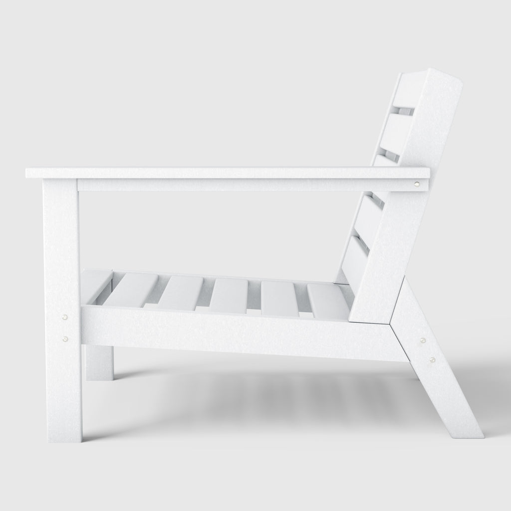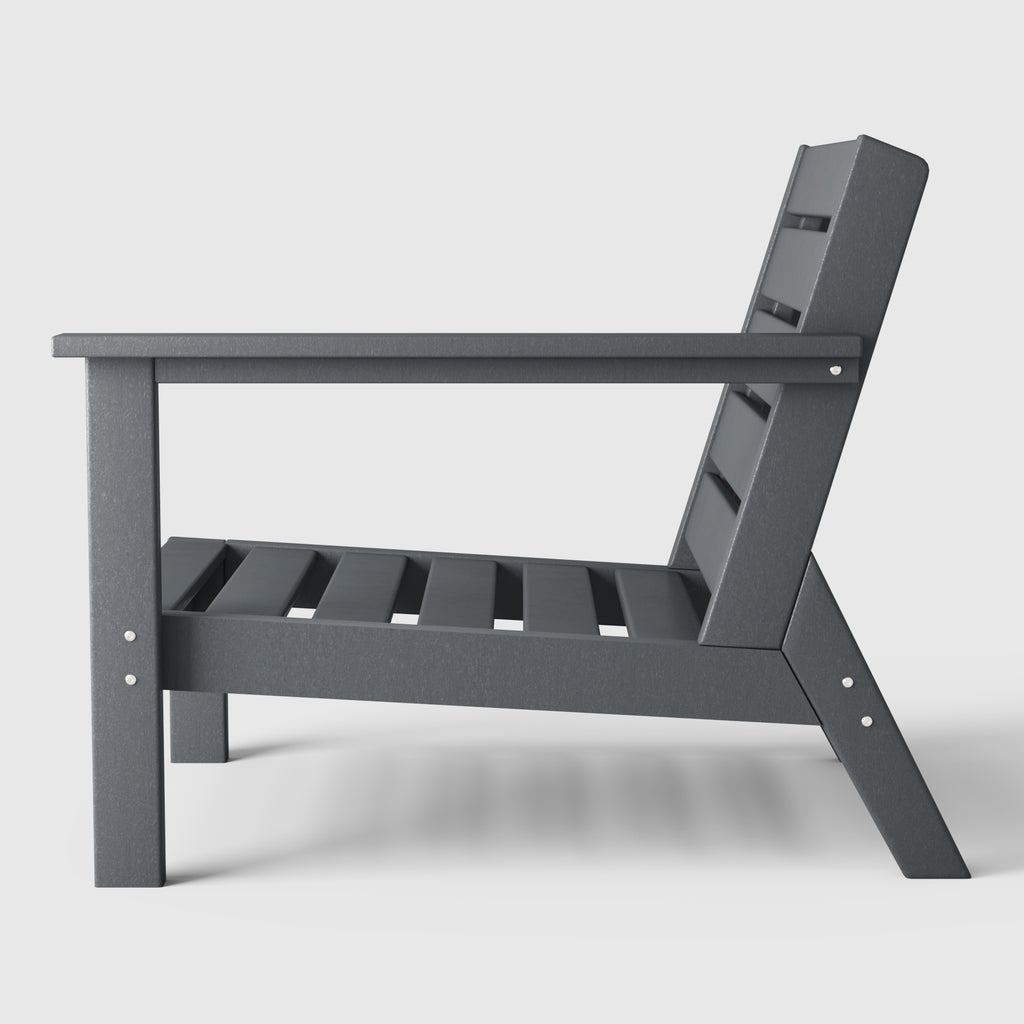 Relax by the poolside or on your patio under the stars with our charming Outdoor Patio HDPE Deep Seating Right Arm Facing Armchair. lounge back in bliss with the deep inclined seat rest and the slanted backrest that offers a relaxing design. our outdoor club chair is a perfect blend of comfort and design with the durable and thick HDPE material that ensures a stable design. turn your backyard into an oasis with this patio sofa chair this season.