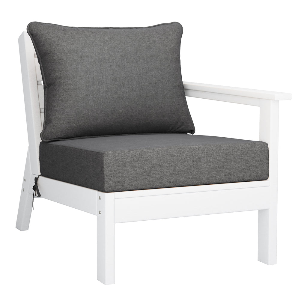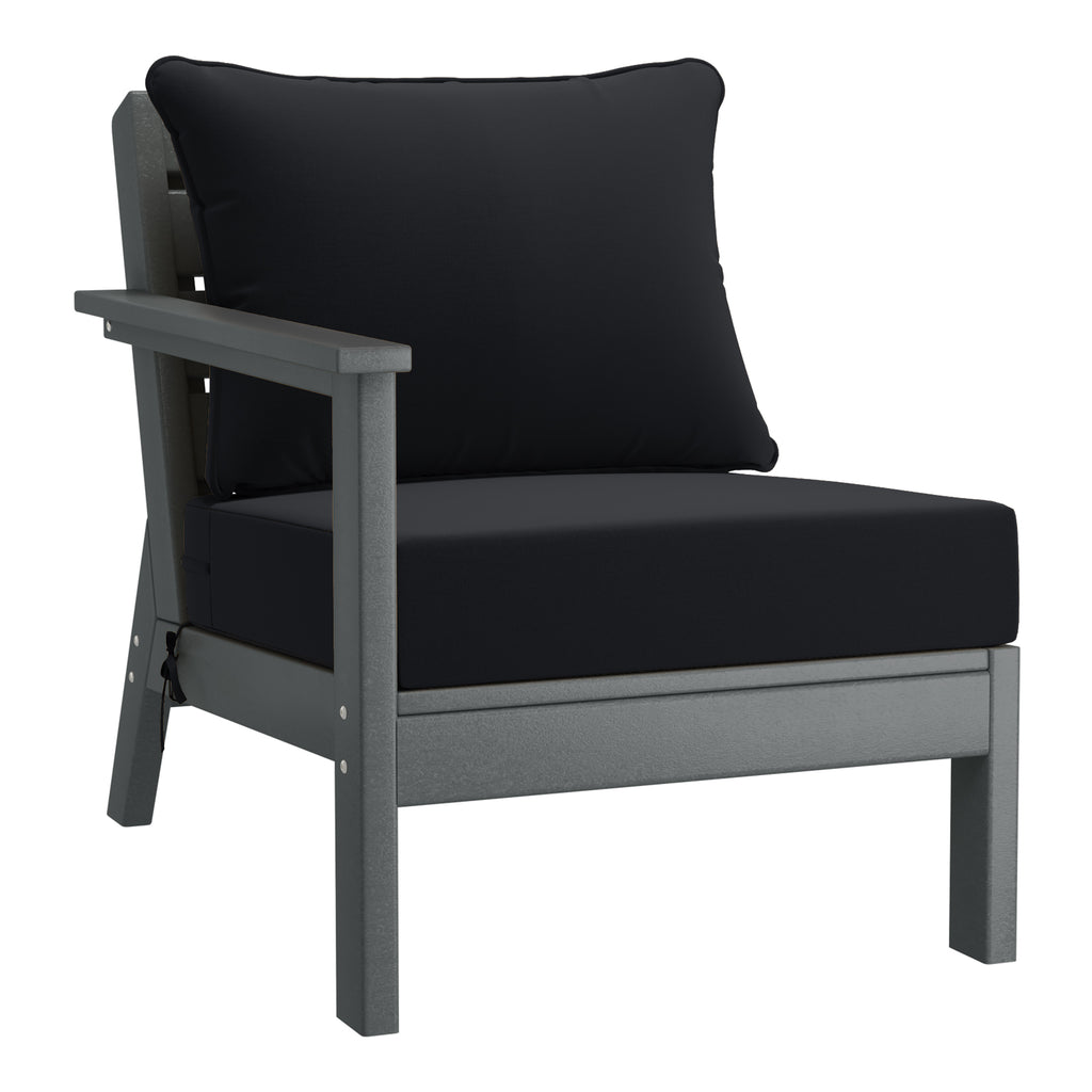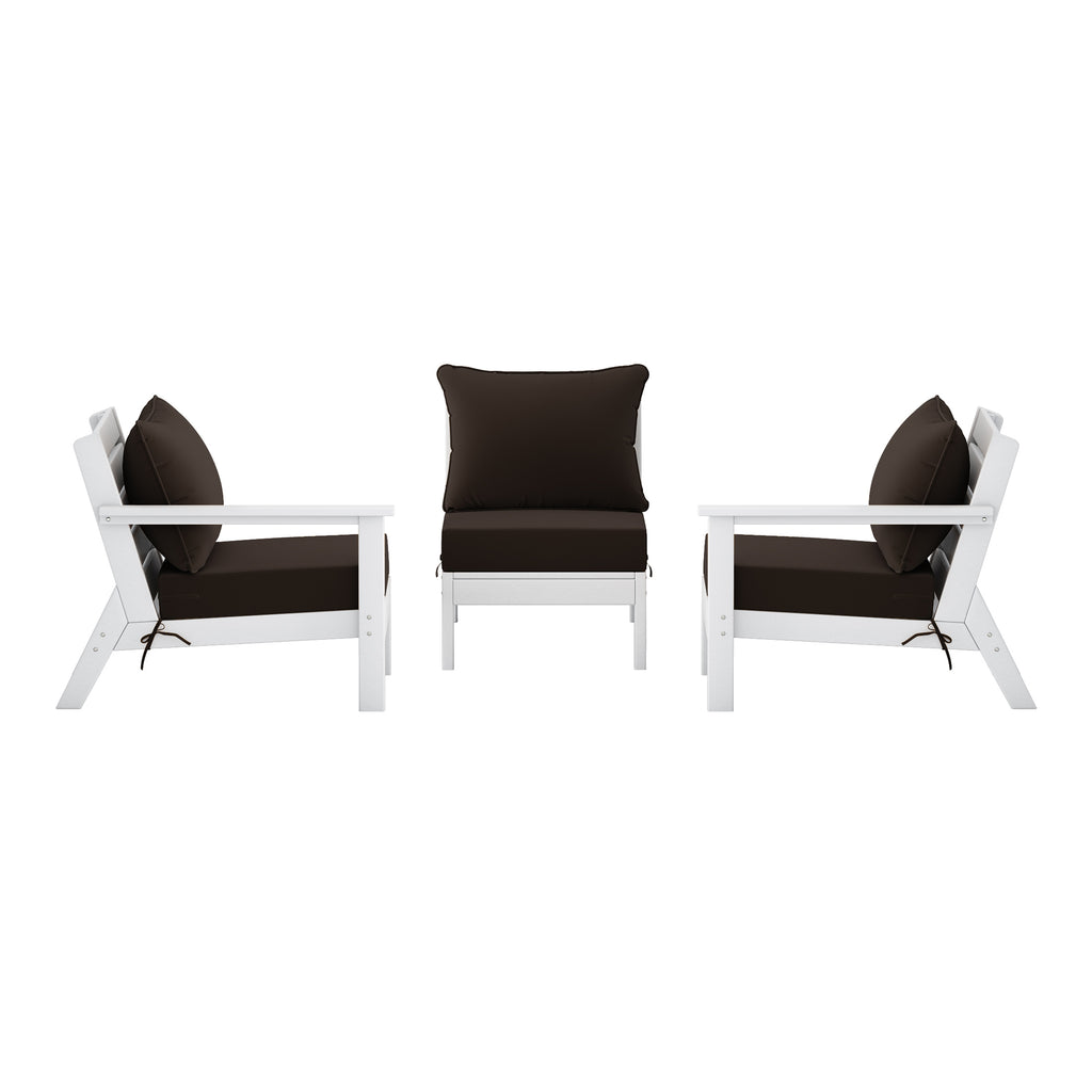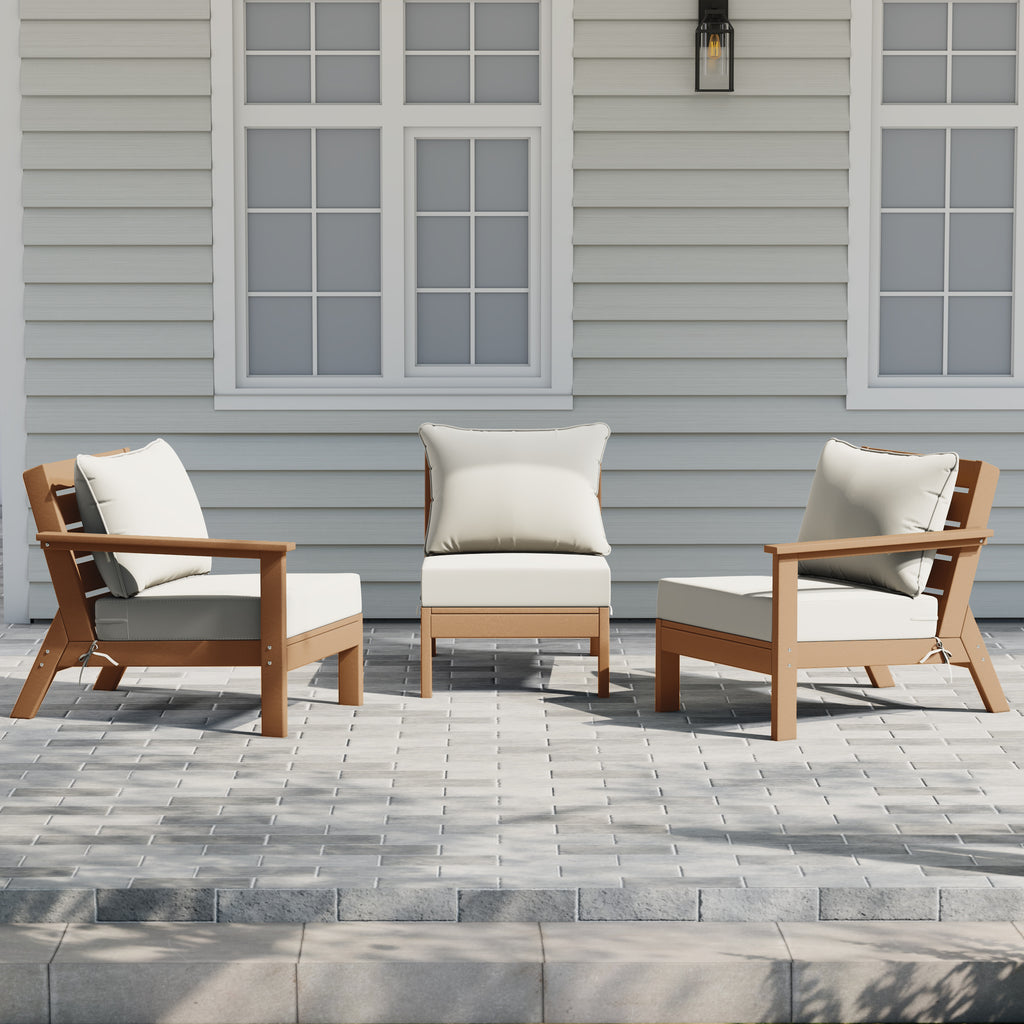 - Set Includes: one (1) deep seating left arm club chair, one (1) deep seating armless club chair, one (1) deep seating right arm club chair, and three (3) deep seating cushion sets