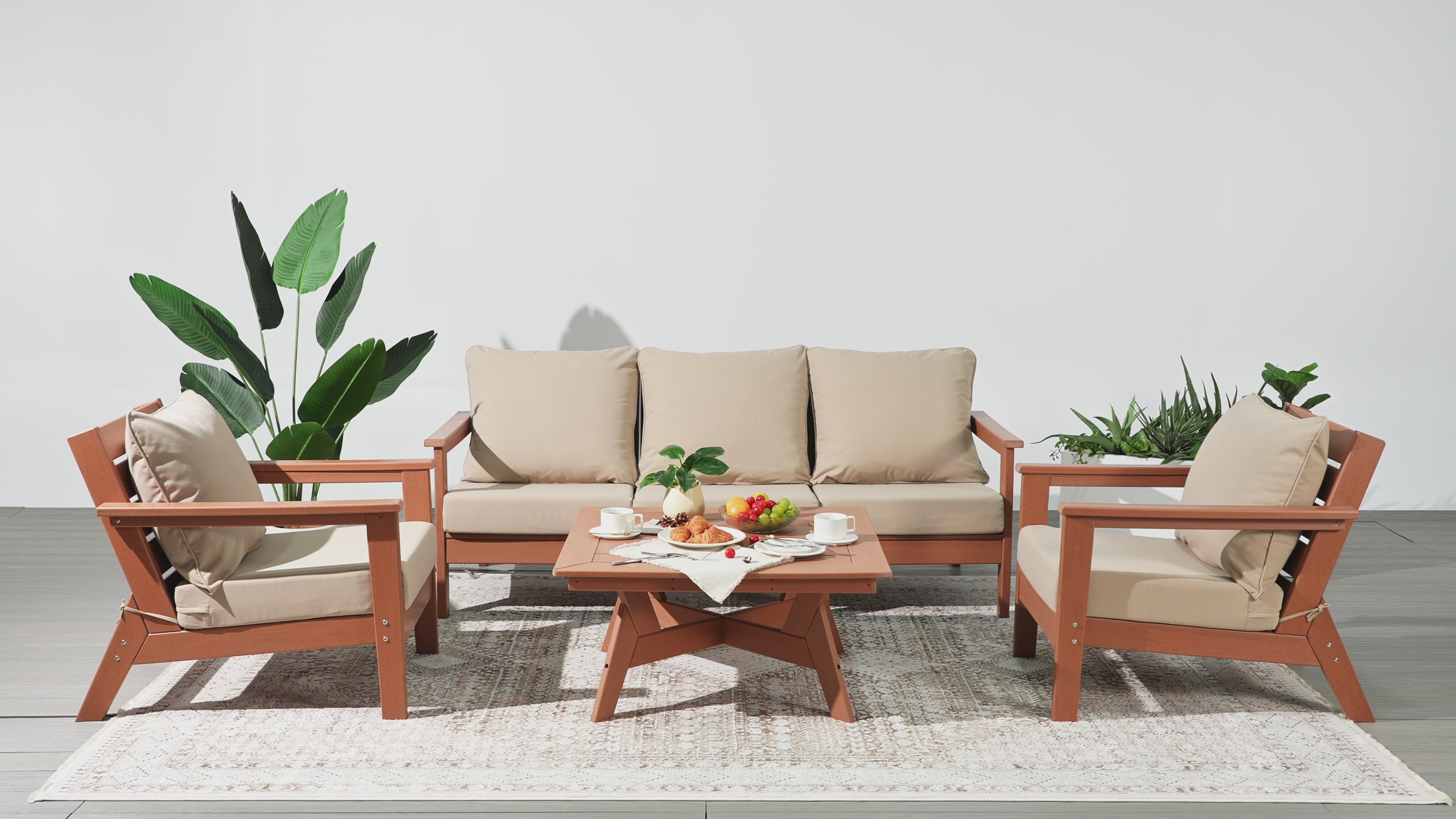 Invite friends and family over this season and gather around our charming 6-piece outdoor patio furniture sectional set. Sink into comfort on the high-resilience foam-filled, water-repellent deep seating patio cushions, far superior to regular polyurethane foam. Crafted from durable HDPE material, this sectional is more resilient than metal or wood options, with fade-resistant and weather-resistant properties. Create a cozy and inviting outdoor space with this stylish and durable furniture set.