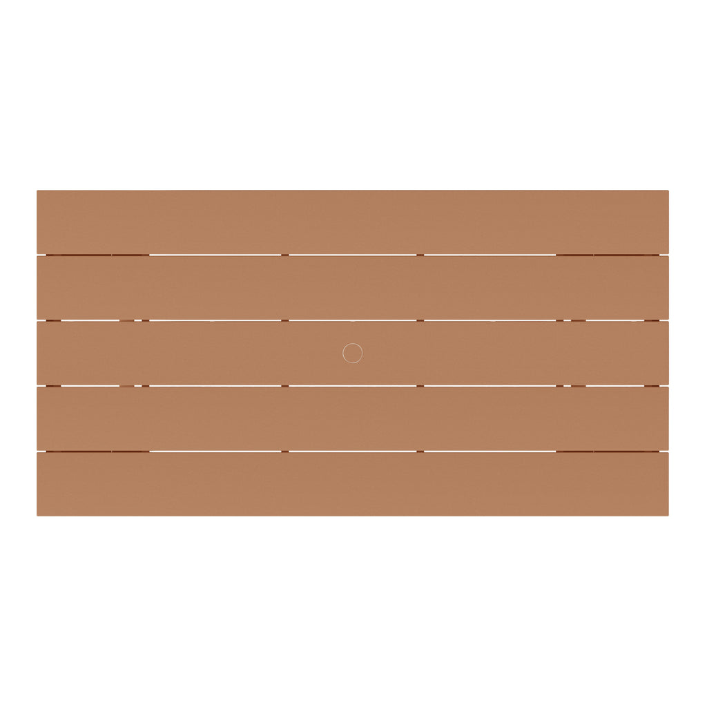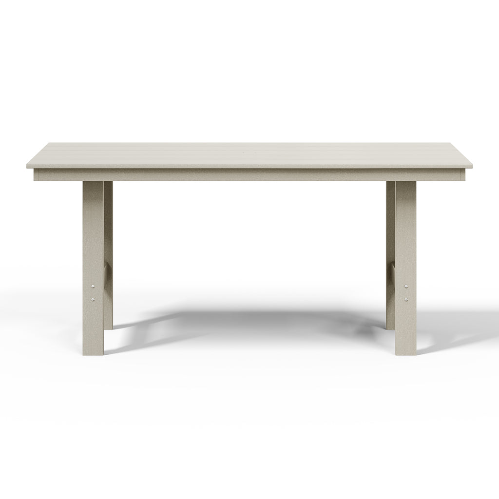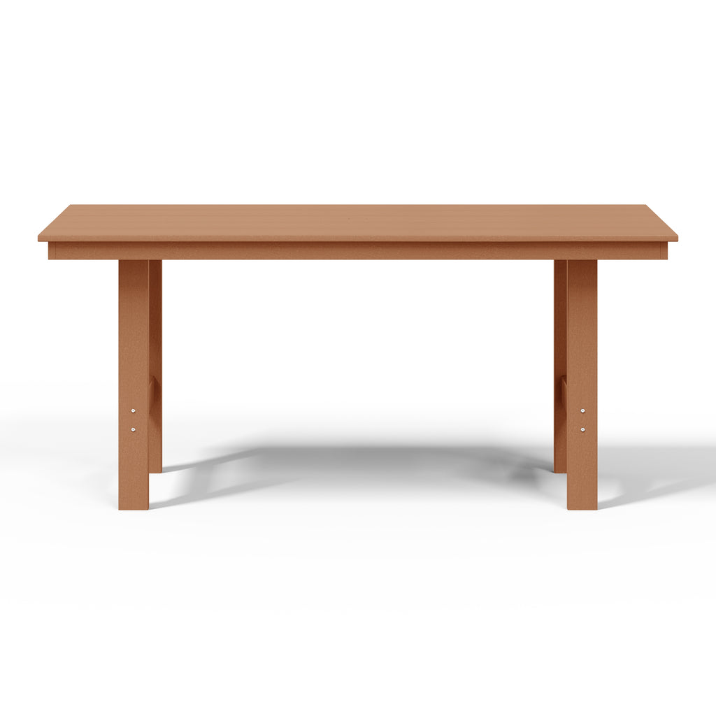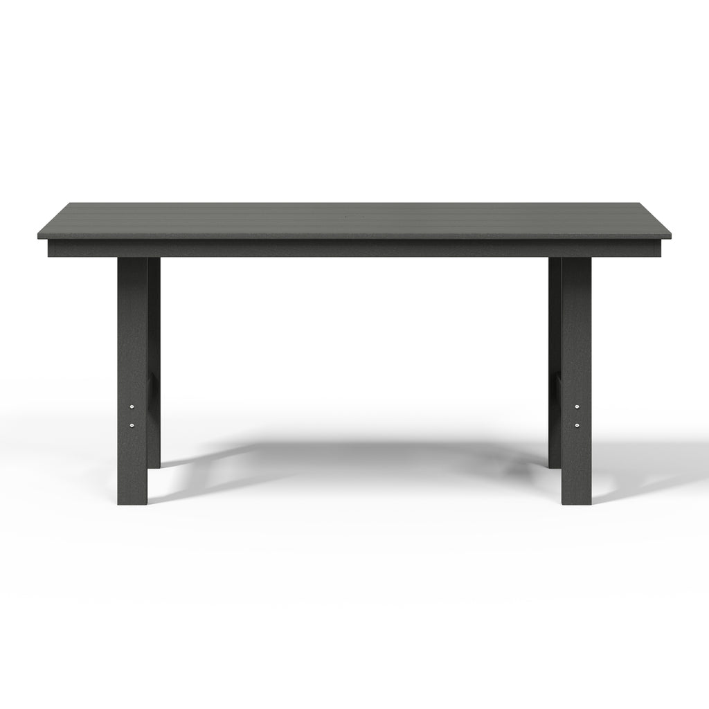 Gather around and make lasting memories with loved ones at our timeless 66" wide rectangular patio dining table. Made from premium, all-weather HDPE material, this table is designed to resist fading and UV damage, making it perfect for outdoor living. Embrace sun-filled days with ease, thanks to a thoughtfully designed 1.9" umbrella hole—ideal for adding your favorite patio umbrella. Crafted with a sleek, reinforced aluminum frame, this table is built to last, providing stability and reducing the risk of warping or wobbling for years of effortless enjoyment.