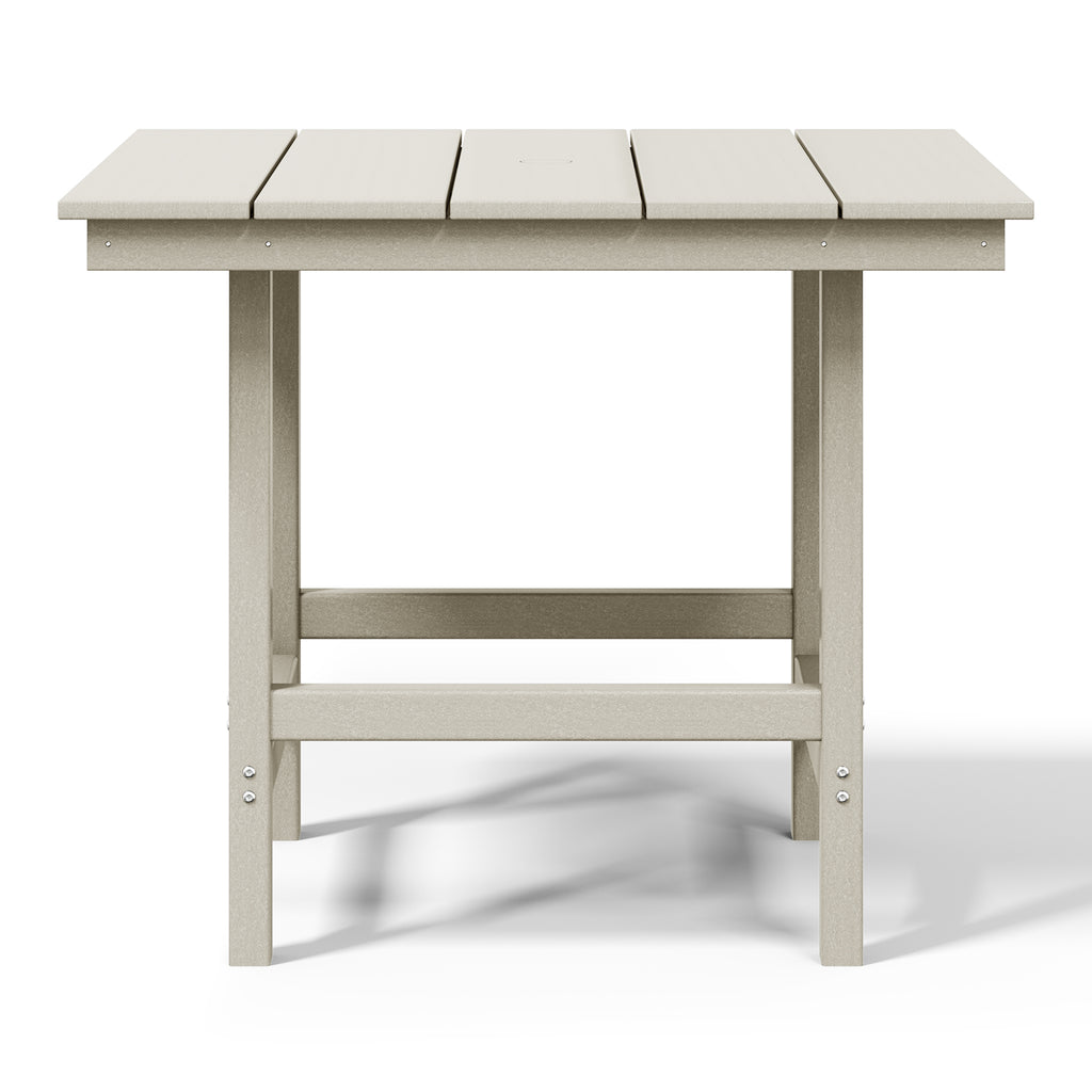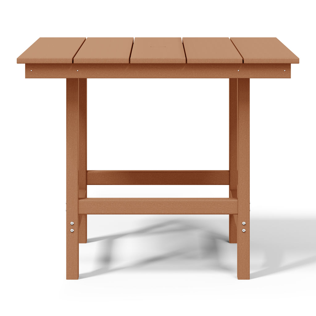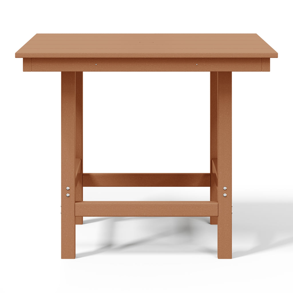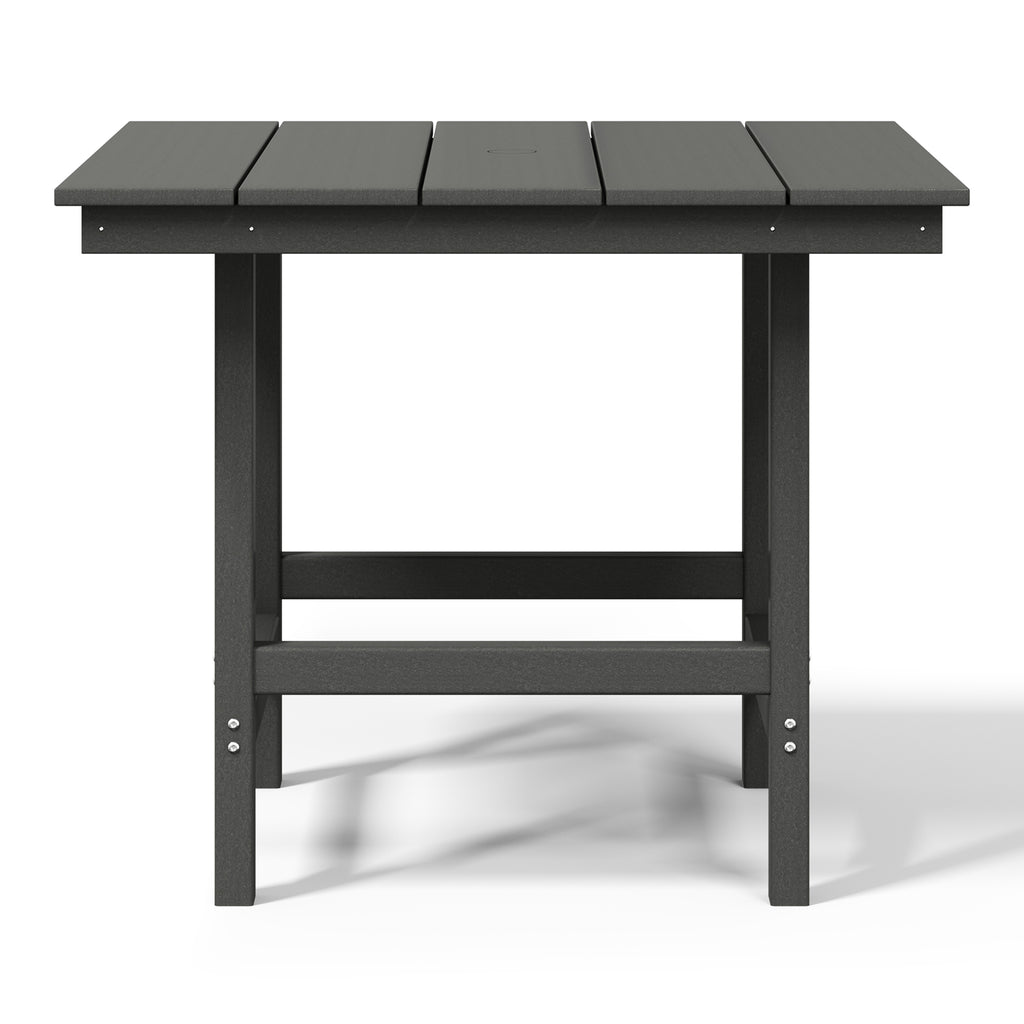 Gather around and make lasting memories with loved ones at our timeless 36" wide square patio dining table. Made from premium, all-weather HDPE material, this table is designed to resist fading and UV damage, making it perfect for outdoor living. Embrace sun-filled days with ease, thanks to a thoughtfully designed 1.9" umbrella hole—ideal for adding your favorite patio umbrella. Crafted with a reinforced frame, this table is built to last, providing stability and reducing the risk of warping or wobbling for years of effortless enjoyment.