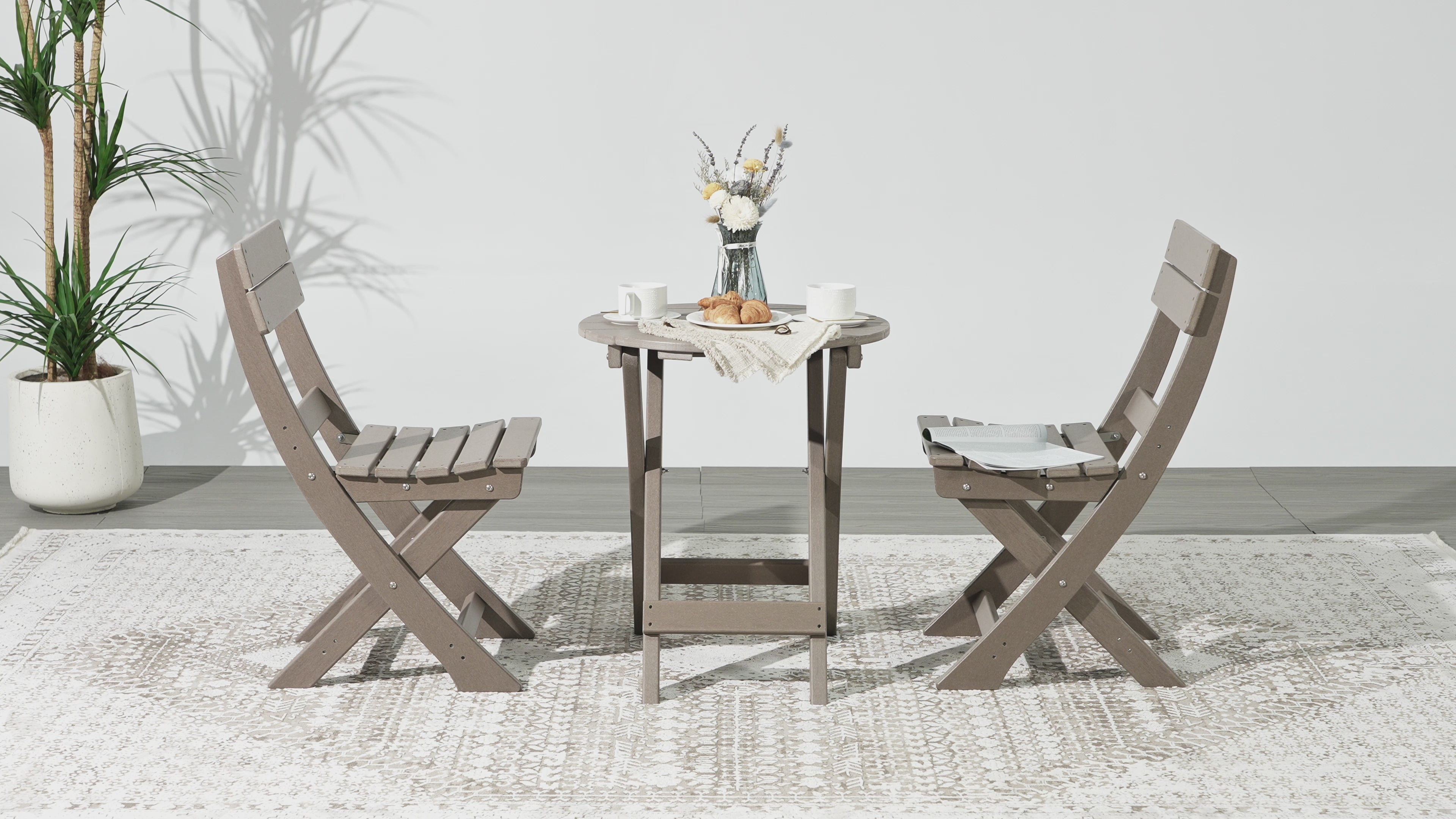 Whether you're enjoying a romantic beach date or a laid-back day in the backyard, this portable folding dining set is the perfect companion for any occasion. Crafted from durable HDPE all-weather material, both pieces are built to withstand outdoor elements with UV and fade-resistant properties, offering reliable protection in various weather conditions. When not in use, both the table and chair fold compactly for convenient storage and easy mobility. The table features a stable X-frame leg design, while the chair's X-frame construction ensures stability and minimizes wobbling. Enjoy a comfortable and convenient dining experience wherever your adventures take you.