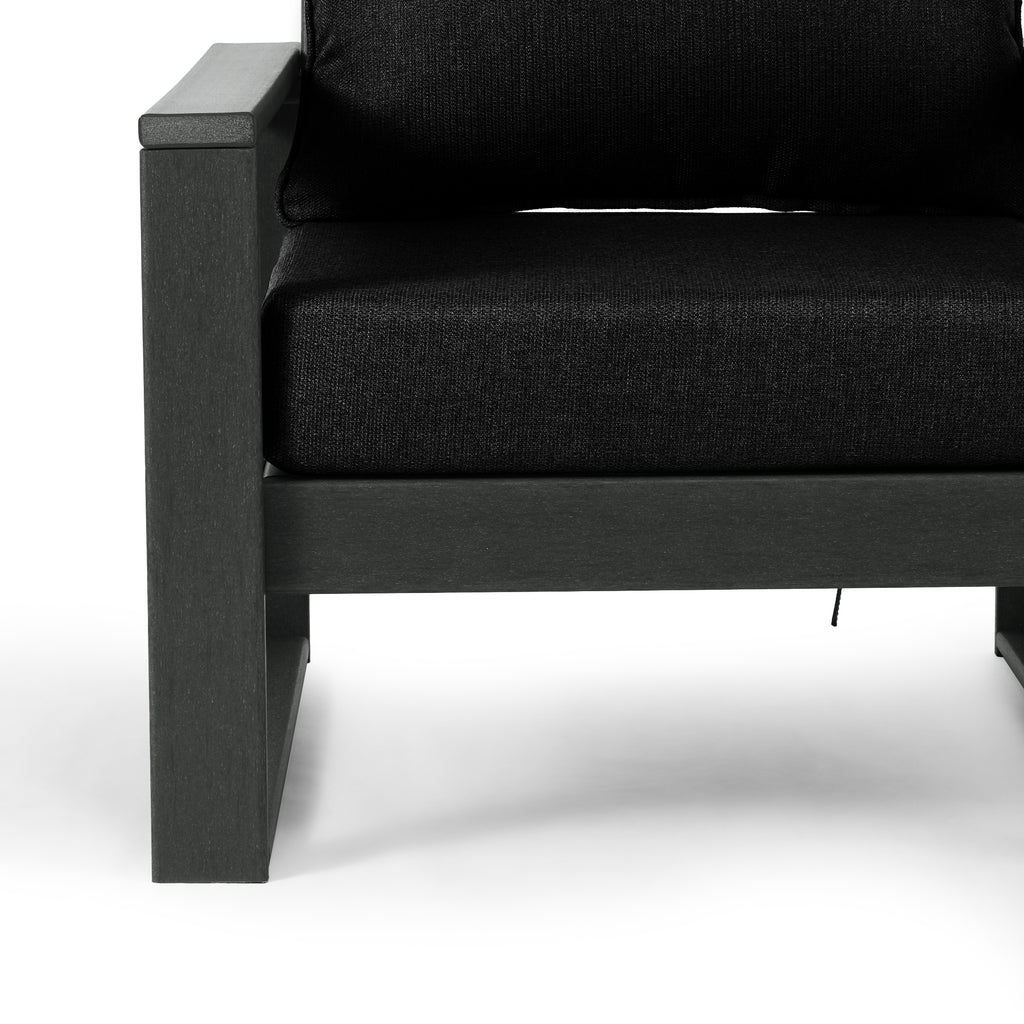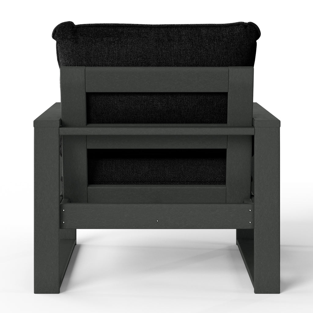 Relax by the poolside or on your patio under the stars with our charming Modern Outdoor Club Chair with Fade Resistant Deep Seating Cushions. Lounge back in bliss with the deep, inclined seat rest and the slanted backrest, which offer a relaxing design. Plush, soft, yet firm cushions are filled with high-resilience foam, making them the perfect blend of comfort and durability. The olefin cushion covers are removable and machine-washable, and they are also waterproof and UV and fade-resistant, perfect for the outdoors. Our outdoor club armchair is a perfect blend of comfort and design, featuring durable and thick HDPE material with a U-shaped leg design that ensures stability. Turn your backyard into an oasis with this patio sofa chair this season.