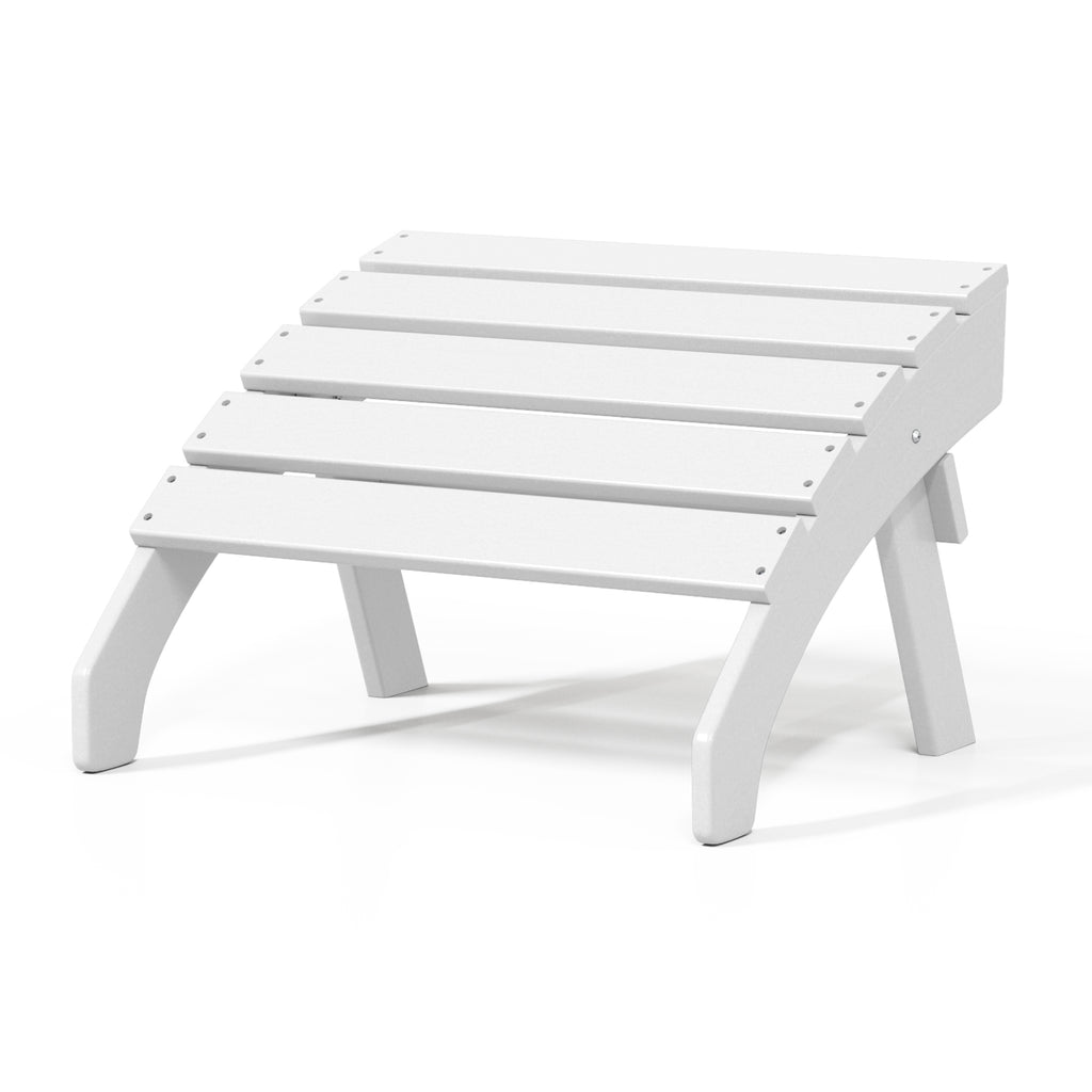 Prop up your feet, kick back, and relax with our charming Outdoor Patio HDPE Folding Ottoman. Made from durable, all-weather HDPE material, it is perfect for the outdoors and can withstand harsh UV rays. The rigid design features curved legs, with square foot designs on the front legs for enhanced stability during use. At 22 inches wide, it offers plenty of legroom, making it the perfect ottoman for your Adirondack chair this season.