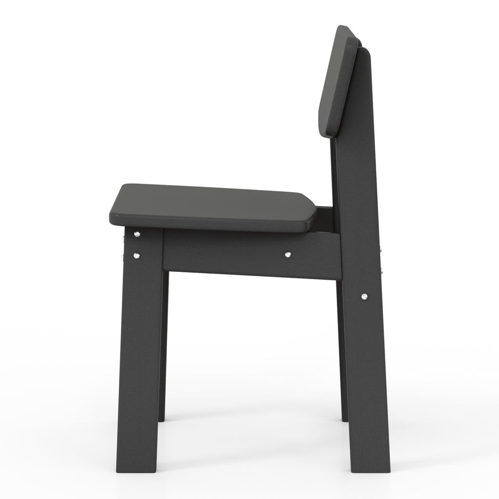 Add charm to your outdoor HDPE patio dining set with our kids' modern plastic patio dining chairs, which also doubles as a toddler activity chair, completing your family set. Our kid's chair is crafted from durable HDPE that is safe for your little ones. Designed for safety and weather resistance, it features smooth edges to prevent scrapes and scratches. The all-weather-resistant material is also UV and fade-resistant, keeping its charming color season after season. Create a picture-perfect family setting by pairing our children's chairs with your existing patio furniture or transform your child's playroom into a haven for comfort and tea parties.