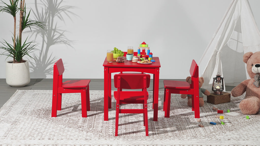 - Set Includes: Four (4) Kids Plastic Dining Chairs and One (1) 24" Wide Kids Square Dining Table