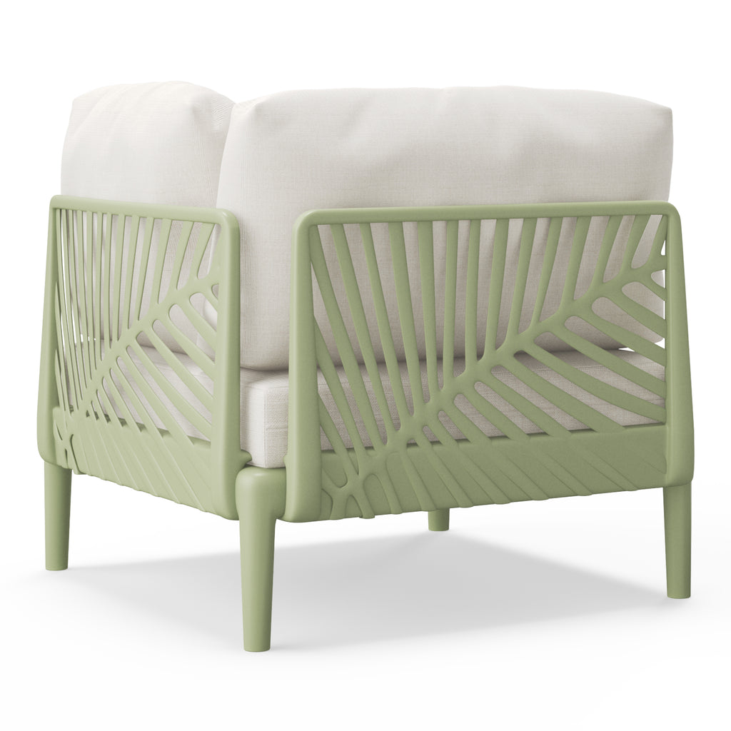 Introduce a touch of contemporary artistry to your patio with this deep-seating patio corner club chair, designed to create lasting moments of outdoor relaxation. The chair's sculptural frame, crafted from durable, UV and fade-resistant polypropylene resin, brings a modern, nature-inspired element to your space with its distinctive palm leaf pattern. Sink into plush, high-density foam cushions that offer unparalleled comfort and support, maintaining their shape and resilience through seasons of use. The removable, machine-washable covers, featuring easy-access zippers, ensure effortless upkeep. With a generous 27.5-inch wide and deep seat, this outdoor club chair invites you to unwind and savor your outdoor retreat. Its thoughtful design and enduring materials make it a focal point for modern al fresco living.