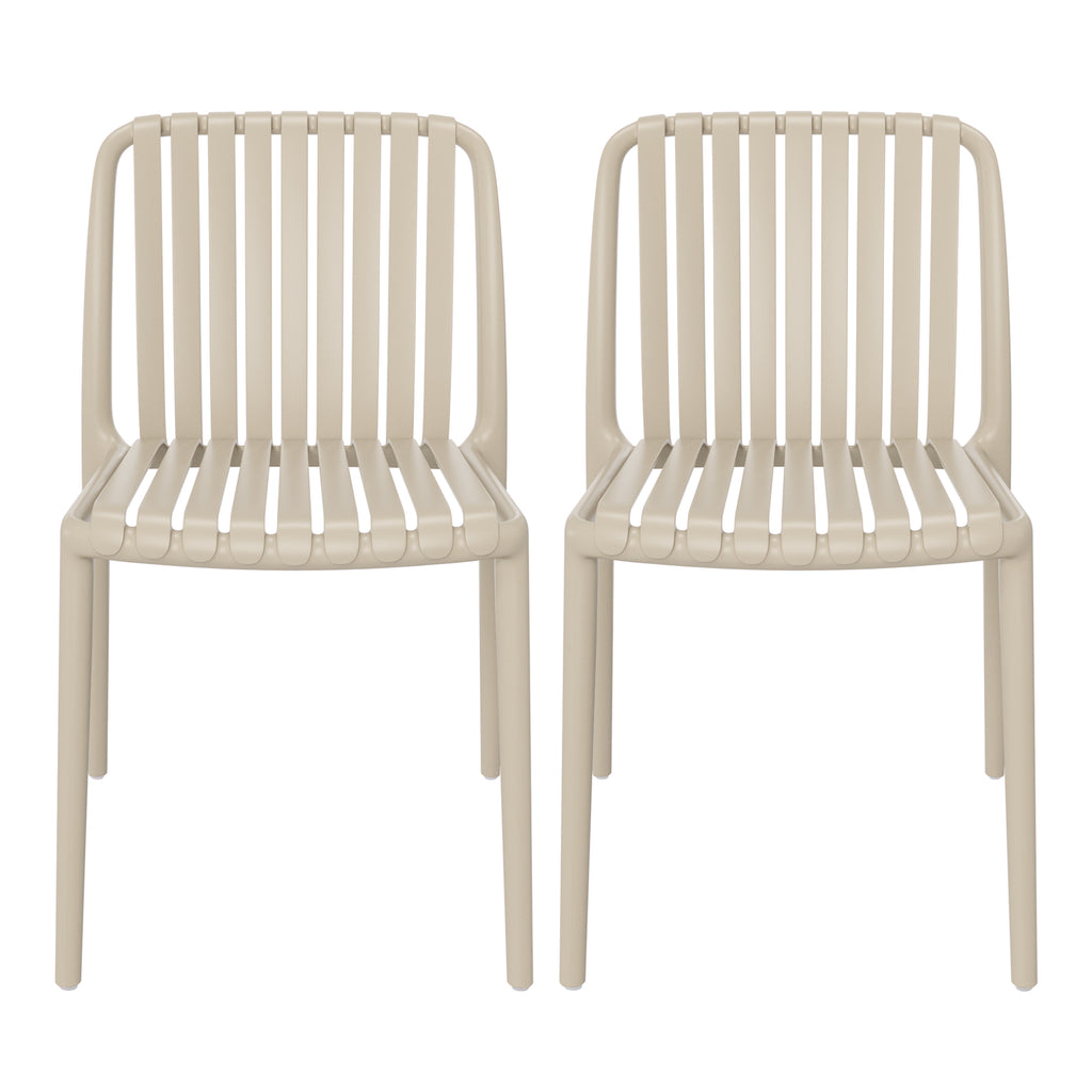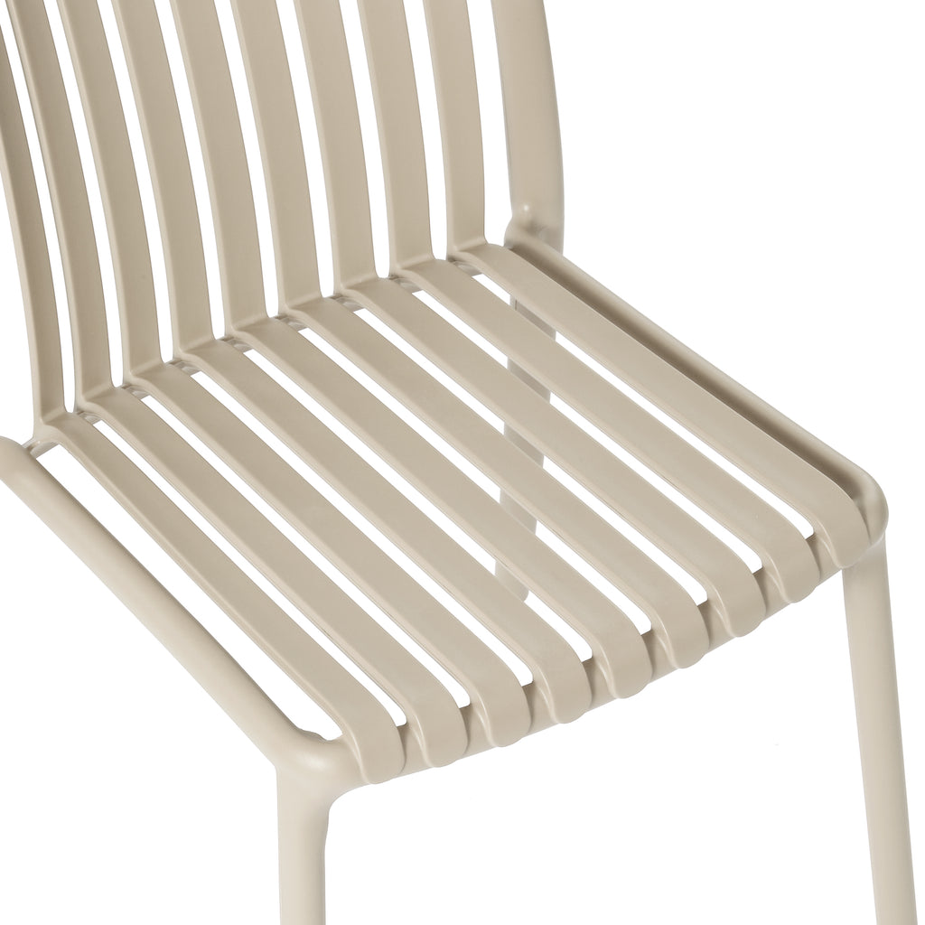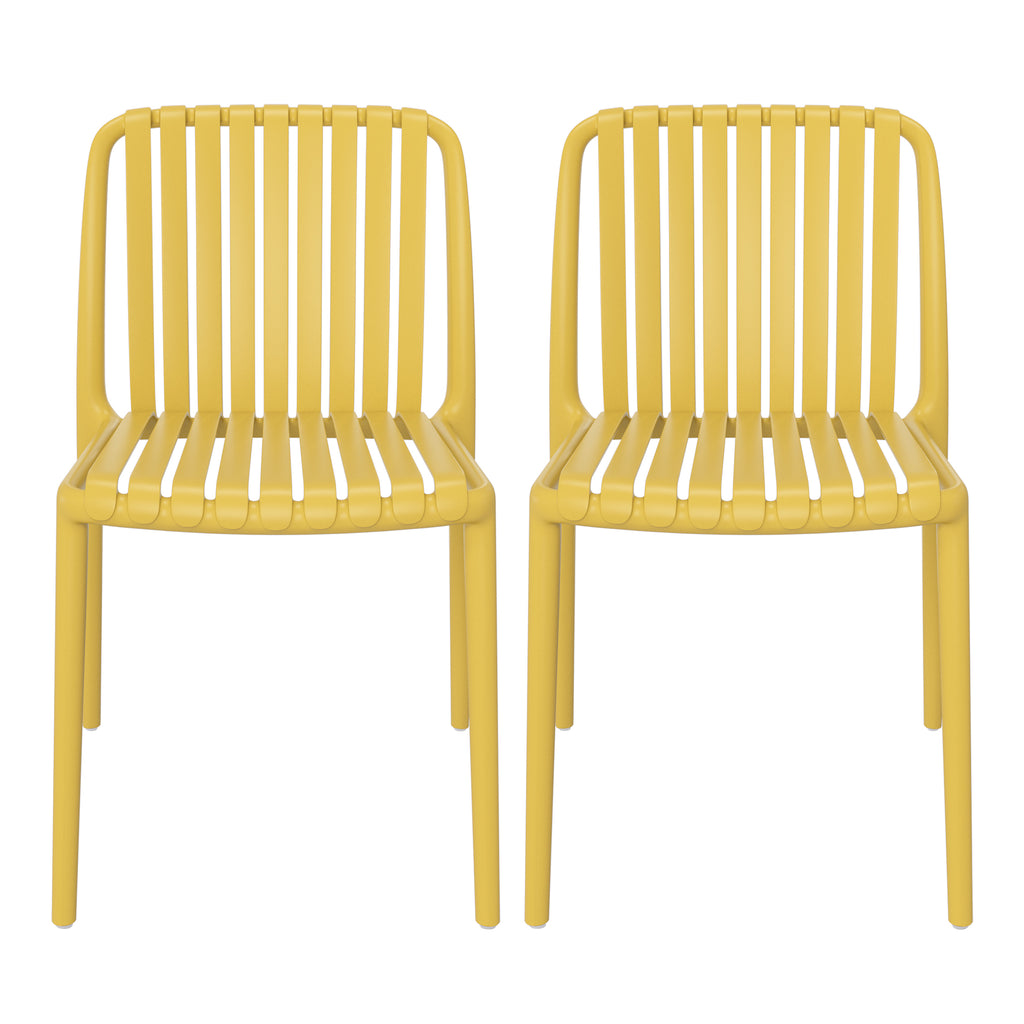 Make your outdoor patio balcony or terrace feel like a place of comfort and charm with our attractive modern outdoor resin dining chairs. Constructed from durable all-weather PP resin, these chairs are built to last. Their UV and fade-resistant properties ensure vibrant colors for years to come. Lightweight and easy to move, they're perfect for creating a flexible dining area on any sized patio or balcony. Stackable for space-saving convenience and a comfortably ventilated seat and backrest design help provide fresh air flow through keeping you cool during warmer days and allows water to not puddle and preventing you from sitting a puddle of water.