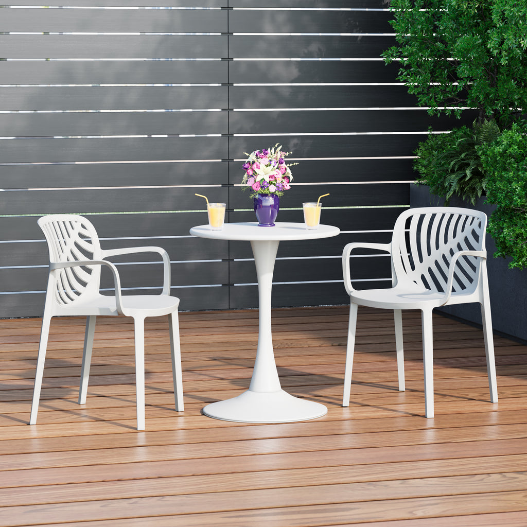 Gather with friends or family for a quick brunch on your balcony with our outdoor stackable resin dining arm chairs. Crafted from durable, all-weather PP resin, prepared to withstand the elements while retaining their vibrant color year-round thanks to their UV and fade-resistant properties. Lightweight and simple to move, they are perfect for creating a flexible dining area on even the smallest balconies or patios. Designed with comfort in mind, featuring smooth armrest and a ventilated backrest to keep you cool on warm summer evenings. And when not in use, they stack neatly for easy storage.