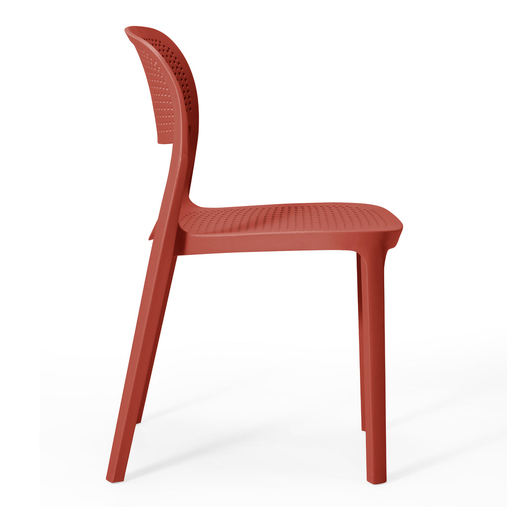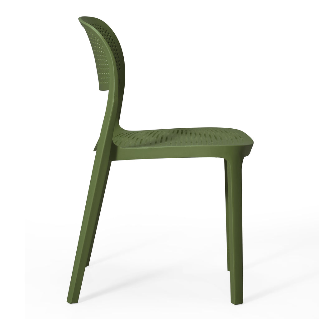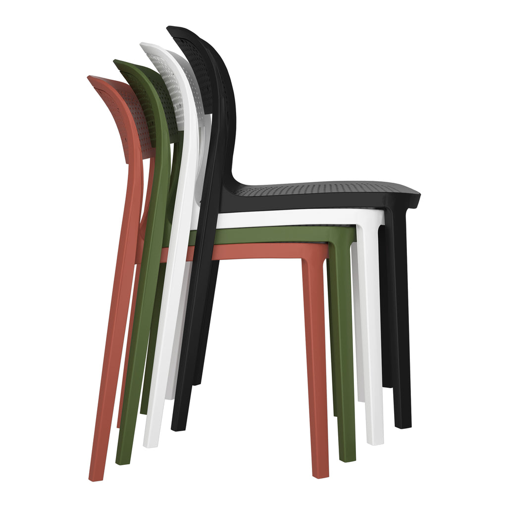 Gather with friends or family for a quick brunch on your balcony with our outdoor stackable resin dining armchairs. Crafted from durable, all-weather PP resin, prepared to withstand the elements while retaining their vibrant color year-round thanks to their UV-resistant properties and also perfect for being used as indoor plastic dining chairs. Lightweight and simple to move, they are perfect for creating a flexible dining area on even the smallest balconies or patios. Designed with comfort in mind, featuring a perforated backrest and seat to keep you cool on warm summer evenings by allowing fresh air to flow through and a comfortable curved backrest for added comfort and rubber foot pads for added protection to the chairs and prevents damage to your floors as well. And when not in use, they stack neatly for easy storage.