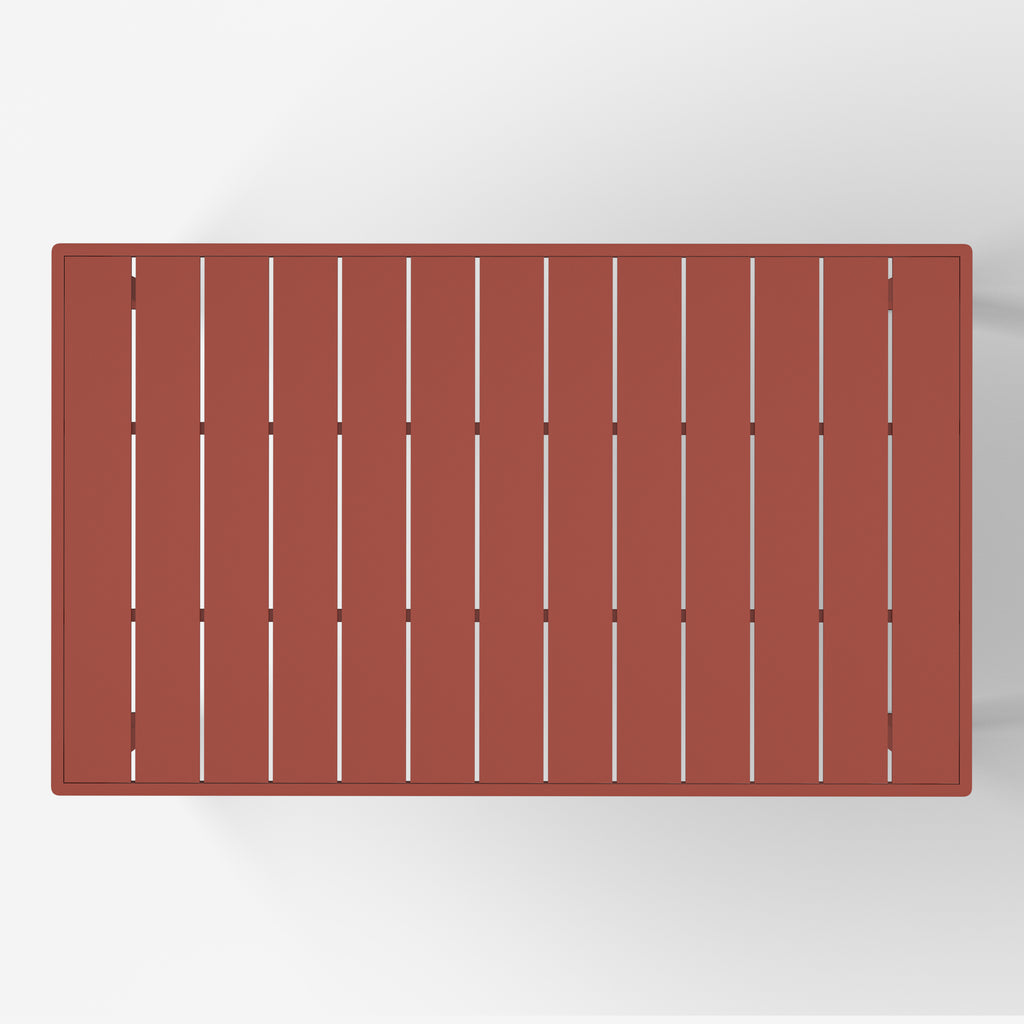 Introduce a pop of color and contemporary style to your patio with our 59" Rectangle Iron Patio Dining Table. Its clean lines and durable iron construction offer a modern foundation for outdoor gatherings. The scratch, fade, and UV-resistant finish ensures lasting beauty, while an e-coating treatment provides exceptional rust and corrosion protection. Adjustable leveling feet guarantee stability on any surface. The slatted tabletop design allows for effortless drainage, maintaining a sleek profile. With ample space for six, this table is the perfect centerpiece for al fresco dining and summer entertaining.