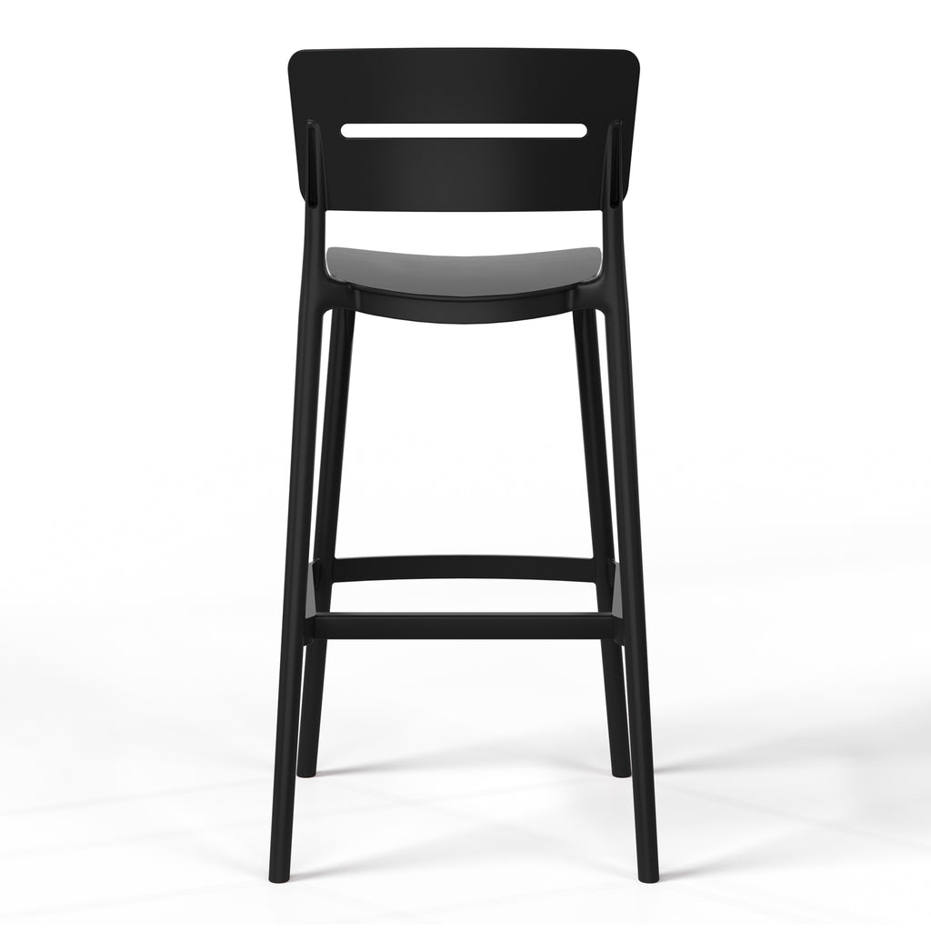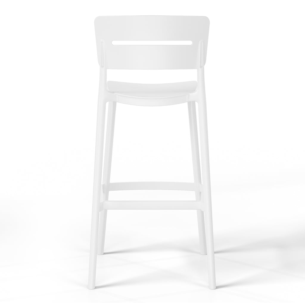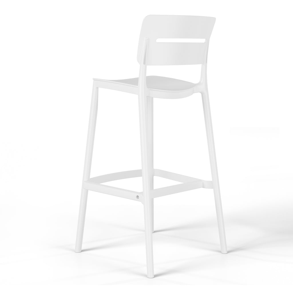 Gather with friends or family for a quick brunch on your balcony with our outdoor stackable resin bar stools. Crafted from durable, all-weather PP resin, prepared to withstand the elements while retaining their vibrant color year-round thanks to their UV and fade-resistant properties. Lightweight and simple to move, they are perfect for creating a flexible dining area on even the smallest balconies or patios. Designed with comfort in mind, featuring a open backrest to keep you cool on warm summer evenings. And when not in use, they stack neatly for easy storage by simply removing the rear footrest.