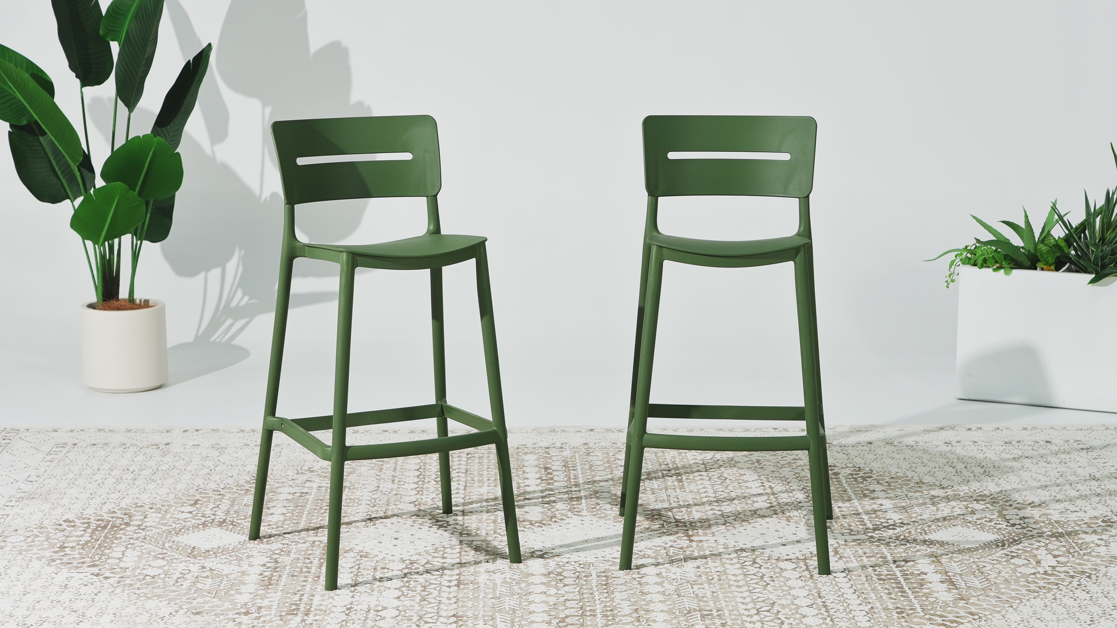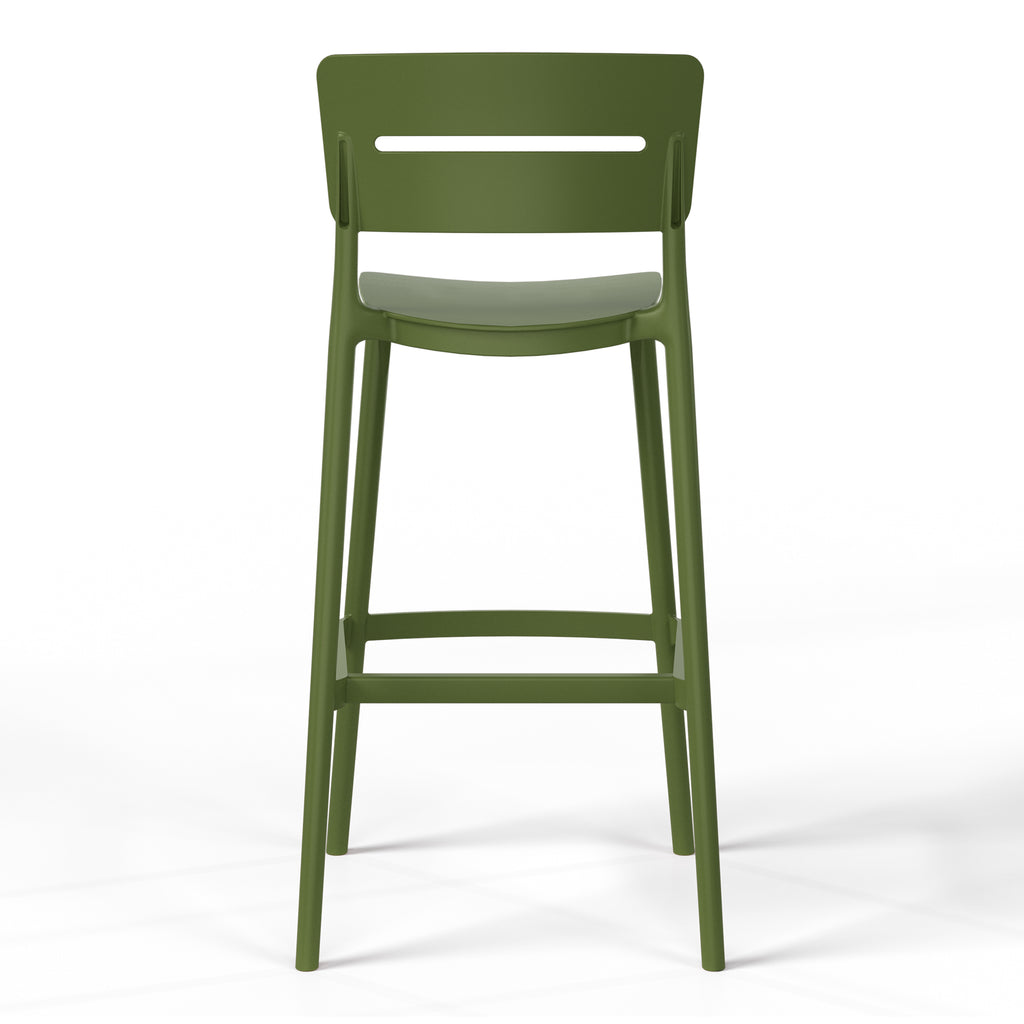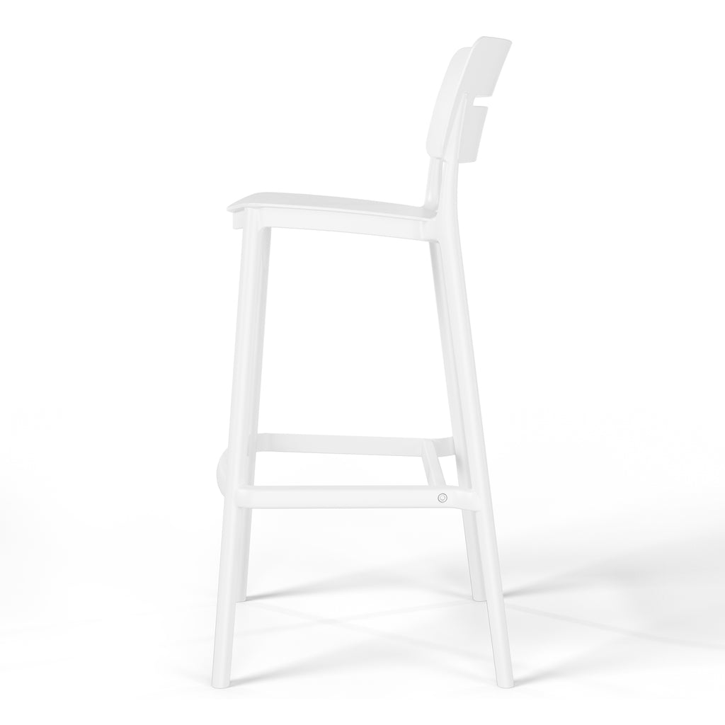 Gather with friends or family for a quick brunch on your balcony with our outdoor stackable resin bar stools. Crafted from durable, all-weather PP resin, prepared to withstand the elements while retaining their vibrant color year-round thanks to their UV and fade-resistant properties. Lightweight and simple to move, they are perfect for creating a flexible dining area on even the smallest balconies or patios. Designed with comfort in mind, featuring a open backrest to keep you cool on warm summer evenings. And when not in use, they stack neatly for easy storage by simply removing the rear footrest.