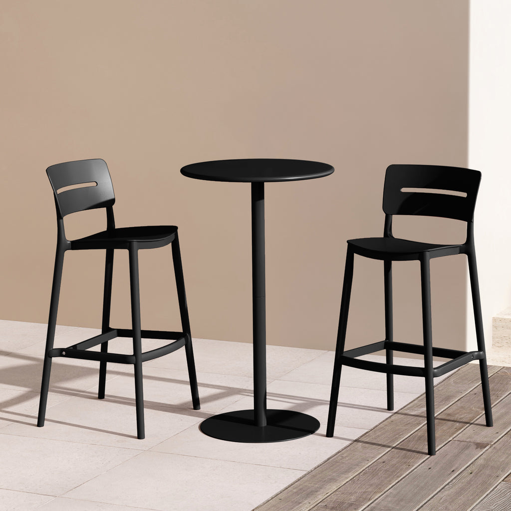 - Engineered For Lasting Durability, The Chairs Feature A Lightweight Polypropylene Build And The Bar Table Is Supported By A Robust Metal Frame