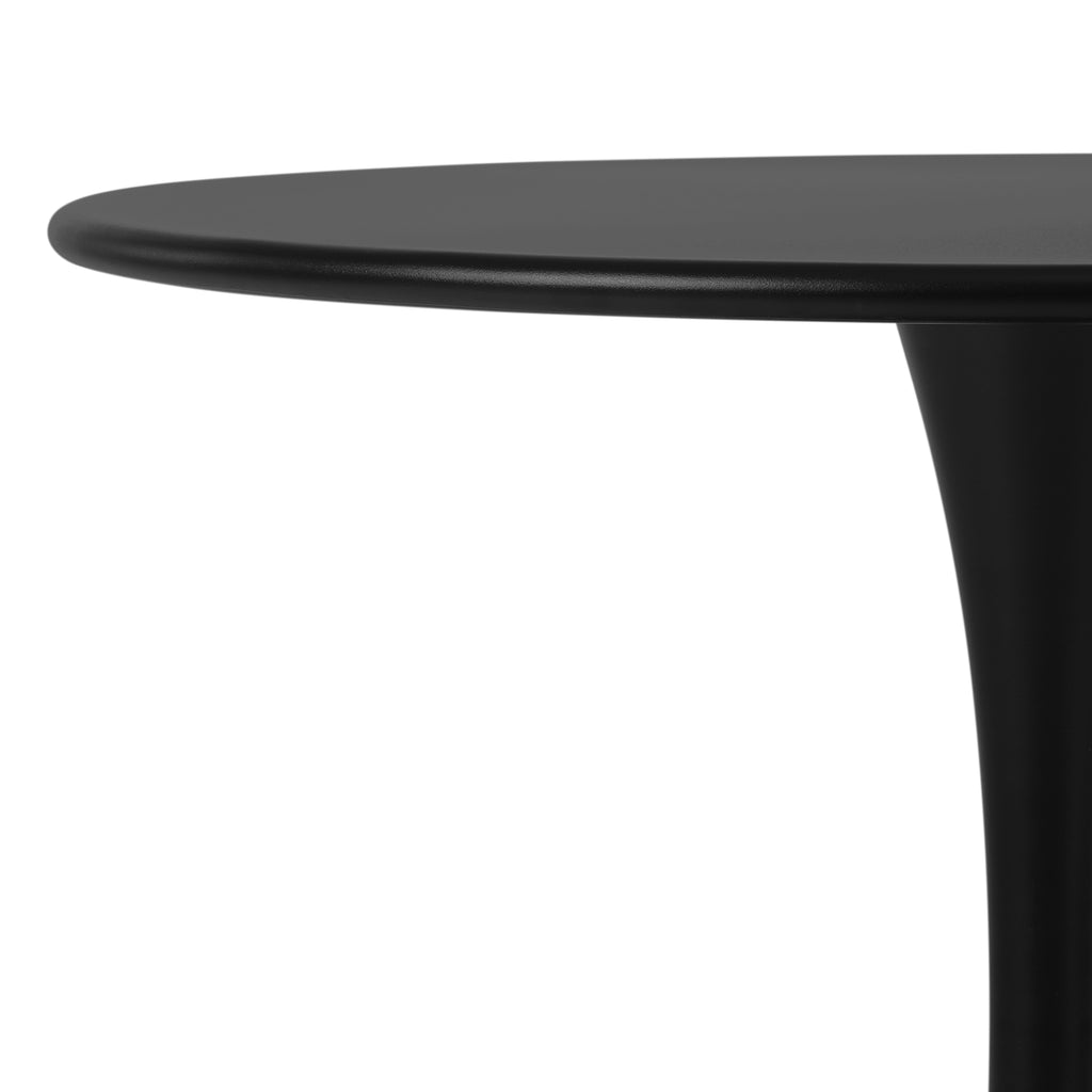 Elevate your outdoor gatherings with this four-person dining table set. The round bistro table, crafted from a durable metal, has a rust-resistant e-coating that ensures the table's longevity and has a wide, flat base to reduce wobbling and promote stability. Complementing the table are four stackable patio chairs, designed for space-conscious living. Made from UV-resistant polypropylene resin, these lightweight chairs allow for effortless rearrangement, adapting to your evolving patio aesthetic. The patio dining chairs are designed with a palm leaf back offering a more comfy design with added charm. The ventilated backrest promotes better airflow to keep you cool during those warmer days, and the contoured backrest provides optimal comfort while sitting. Enjoy instant gratification with the fully assembled chairs, while the table's assembly allows for quick setup, making this 5-piece round patio dining table set for 4 the perfect set for your patio this season.
