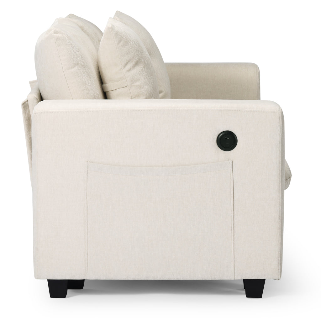 Sink into comfort with our Chenille Loveseat, designed for cozy nights" Perfectly scaled for apartments or family rooms with a generous 55" seat, it features a durable plywood frame and supportive S-spring suspension for lasting quality. Plush, extra-wide foam cushions create an inviting and relaxed feel you'll love. Thoughtfully designed with integrated USB & Type-C ports on the right arm, charging devices is seamless and keeps your space clutter-free from bulky chargers and unnecessary long cables. Convenient side pockets offer a discreet spot for remotes and essentials and thick durable legs offer additional stability to ensure perfect floor contact. A welcome addition to any modern home, apartment, or dorm, this chenille couch is your new favorite spot for unwinding with someone special.