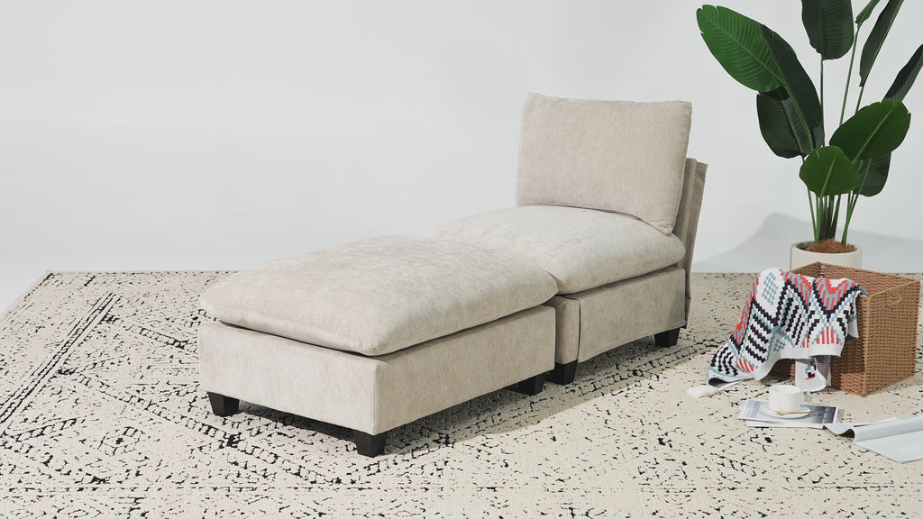 Sink into comfort with our Chenille Chaise Indoor Lounge Chair, designed for cozy nights" Perfectly scaled for apartments or family rooms with a generous 29" seat, it features a durable layered plywood frame and supportive S-spring suspension for lasting quality. Plush, extra-wide foam seat cushions with pocket springs that helps prevent cushion sag and creates an overall inviting and relaxing seat that you'll love. Thick durable legs offer additional stability to ensure perfect floor contact and protect your floors with the floor protectors on the feet to prevent any damage to your floors. A welcome addition to any modern home, apartment, or dorm, this chenille bedroom chaise lounge is your new favorite spot for unwinding after a long day.