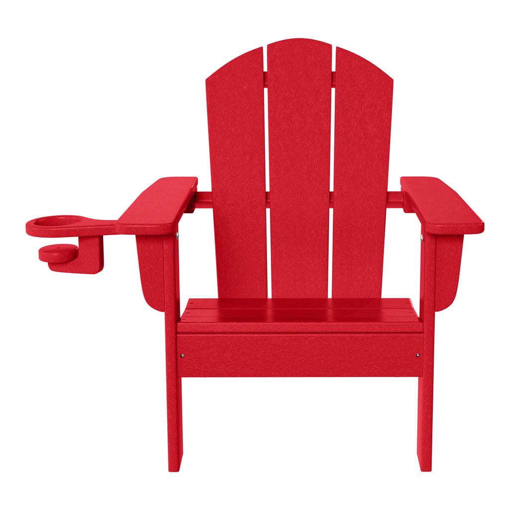 Add a little charm to your existing outdoor Adirondack chair with our kids plastic Adirondack chair that will complete your family set. Our toddler Adirondack is created from a durable HDPE that is safe for your little ones. Designed for both safety and weather resistance, the smooth edges ensure your little ones don't get any scrapes or scratches. The all-weather resistant material is perfect thanks to its UV and fade resistance that will keep that charming color all season long. Create a picture-perfect family setting by matching our child-sized Adirondack chair with a regular-sized one. These chairs also feature a 3-inch wide cup holder that is hidden underneath the arm, perfect for keeping drinks secure.