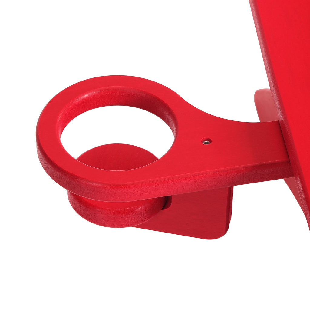 Add a little charm to your existing outdoor Adirondack chair furniture set with our Kids Plastic Adirondack Chairs and Kids Side Table, which will complete your family set. Our Childrens Adirondack side table and chair are crafted from durable, Non-toxic HDPE, ensuring safety for your little ones. Designed for safety and weather resistance, the rounded edges ensure your little ones don't get any scrapes or scratches. The all-weather-resistant material is perfect, thanks to its UV and fade resistance that will keep that charming color all season long. For added convenience, each chair also includes a 3-inch diameter cup holder, hidden discreetly under the arm, which can be easily pulled out for use or tucked away when not needed. Place all your little ones' favorite snacks atop the 12-inch wide side table and drinks in the convenient cup holder. Create that picture-perfect family setting by matching our child's Adirondack chair with a regular Adirondack chair.