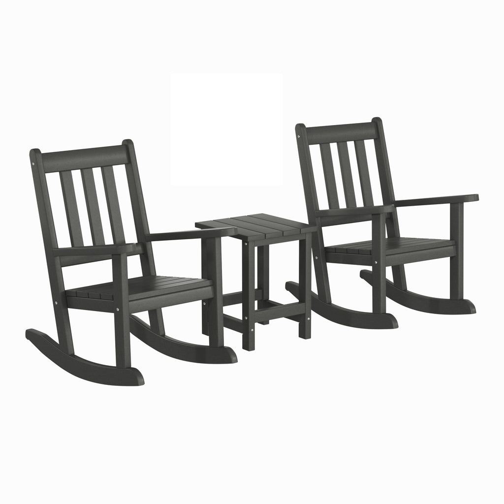 - Set Includes: Two (2) Kids Outdoor Rocking Chairs & One (1) Kids Outdoor Play Table