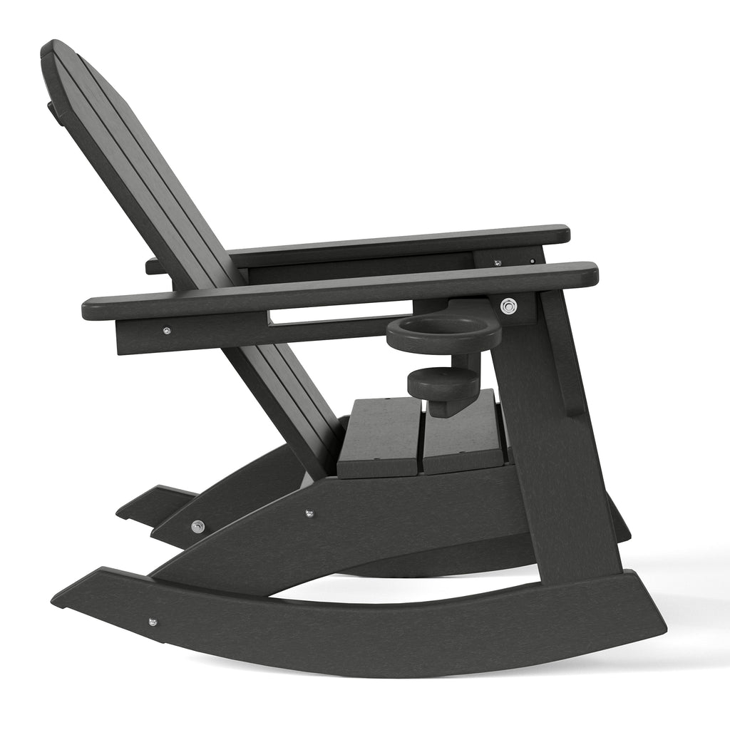Thoughtfully designed for style, safety, and play, our 3-Piece Kids Rocking Chair and Side Table Set brings modern design to little moments of joy. Crafted from smooth, non-toxic HDPE, this durable childrens table and chair set includes two kid-sized rocking chairs with built-in 3" cup holders and a coordinating side table. Each toddler rocking chair offers a gentle, balanced motion with rounded edges and smooth rails for safety. The accompanying kids table features a stable, sculptural base with thick legs and beam supports, creating the perfect spot for snacks, crafts, or storytime. Fade-resistant, weatherproof, and easy to clean, this child table and chair set maintains its charm season after season. Ideal for patios, playrooms, or porches, this timeless kids table and chairs set blends effortless function with refined design—built to last through every stage of play.