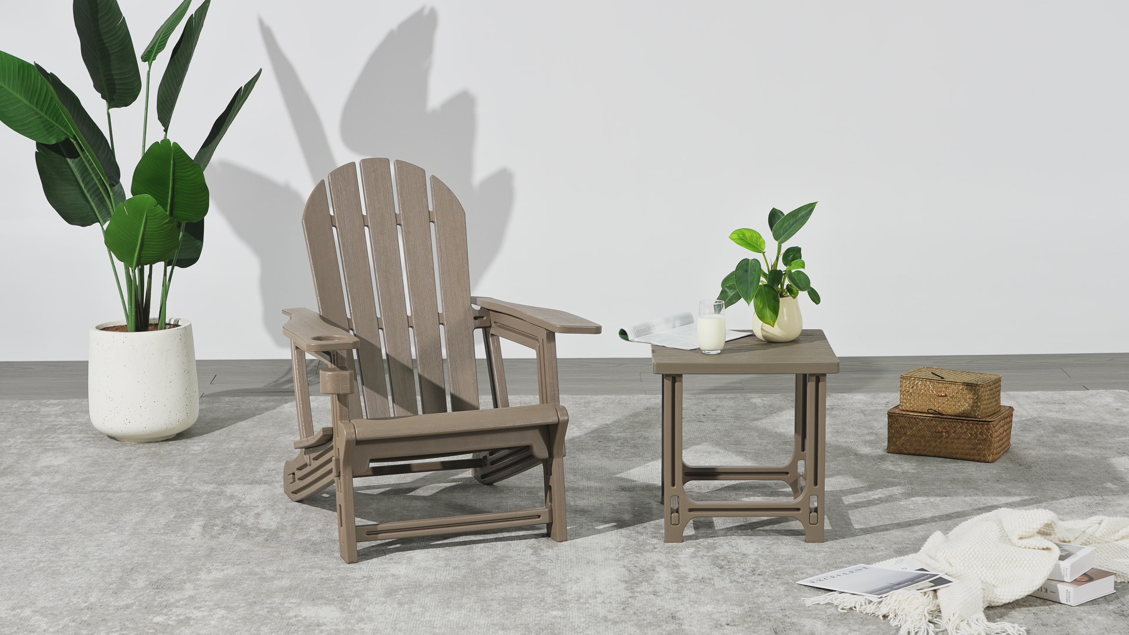 Discover outdoor luxury with our 2-Piece HDPE Adirondack Chair & Side Table Set, designed for elevated comfort and modern outdoor living. Enjoy easy setup with snap-and-lock assembly—no tools, screws, or missing parts. Made from durable, non-toxic HDPE with a wood-like grain texture, this set resists fading, UV rays, and weather for lasting beauty and safety for kids and pets. The chair features broad 5" armrests and a discreet 3.25" cup holder for your favorite tumbler and convenient phone holder. Lightweight and easy to move, it’s perfect for any outdoor space. The side table features rounded edges for safety and a slatted top for quick drainage. Its compact, portable design makes it ideal for decks, patios, or poolside settings. Blending timeless charm with smart design, this set offers style, comfort, and convenience built to last.
