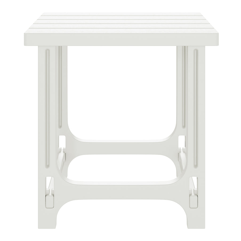 - Set Includes: Two (2) HDPE Adirondack Patio Chair & One (1) 18" HDPE Square Side Table