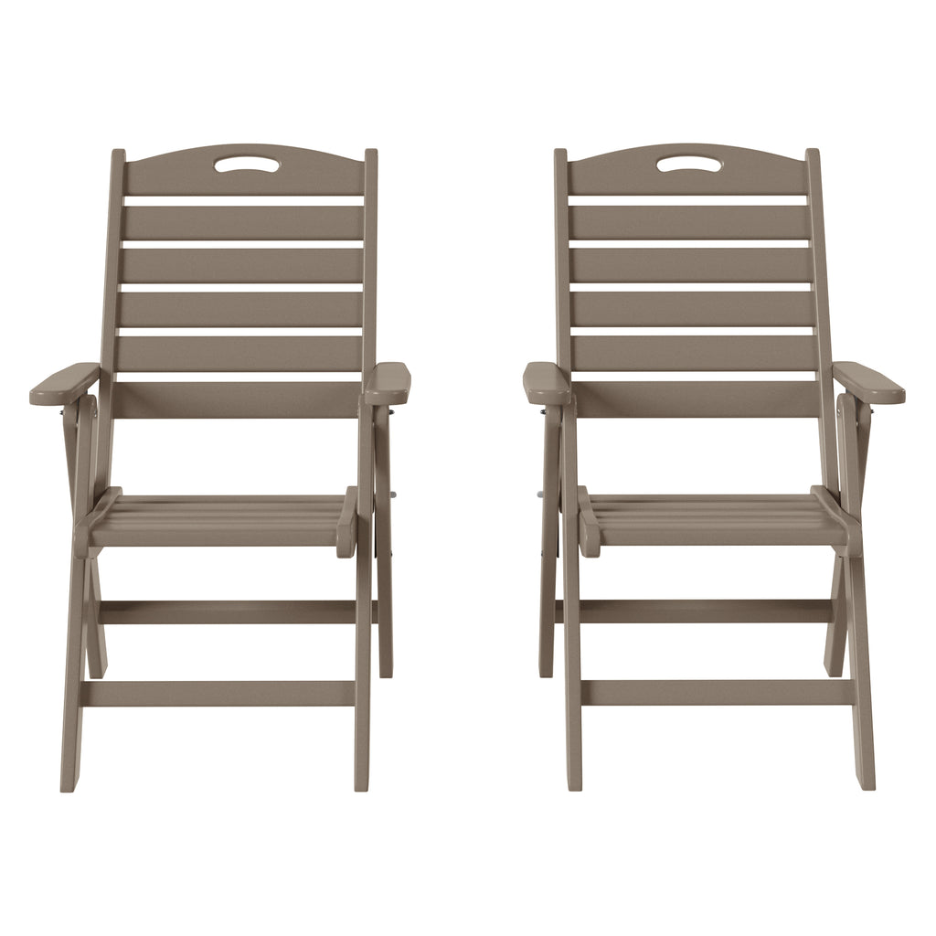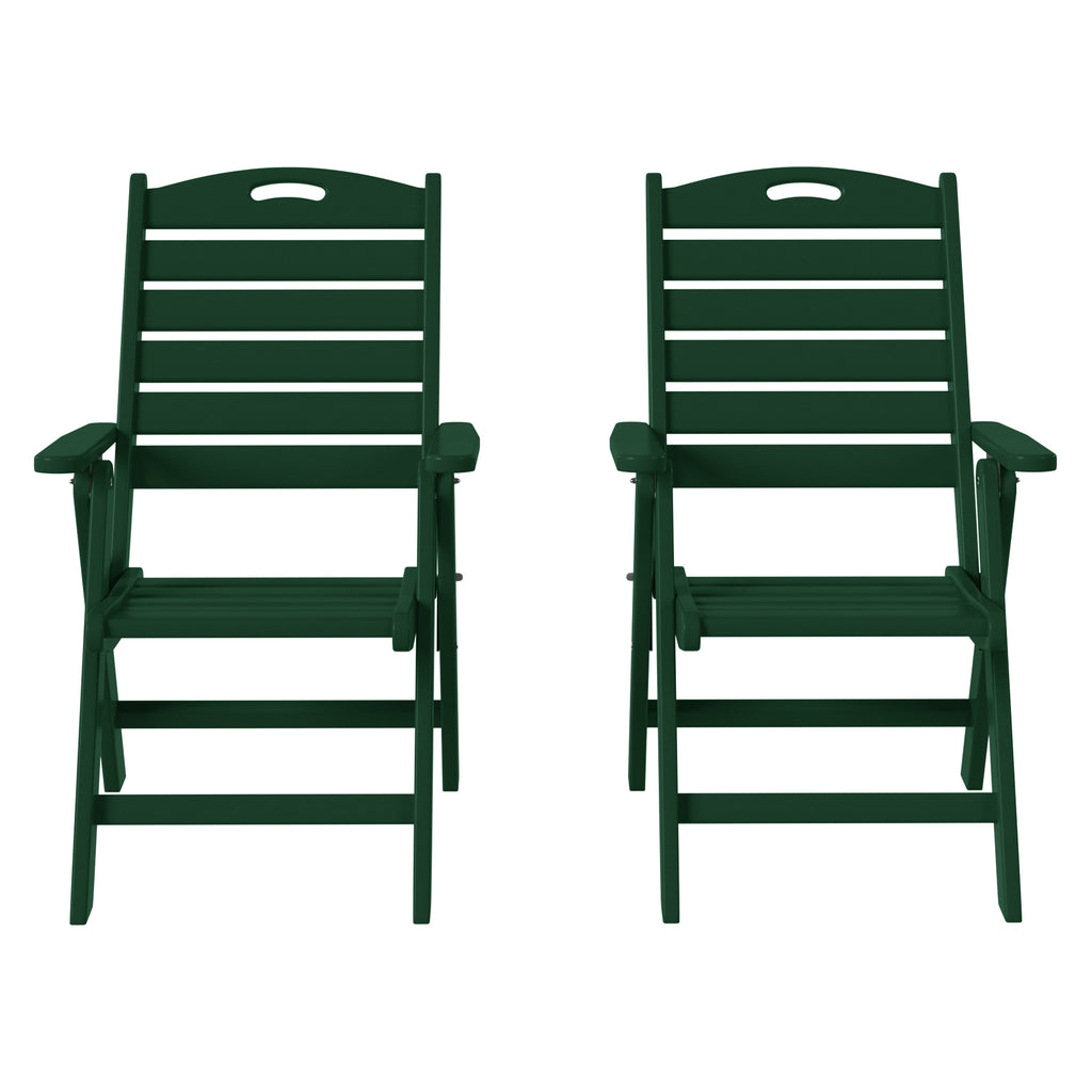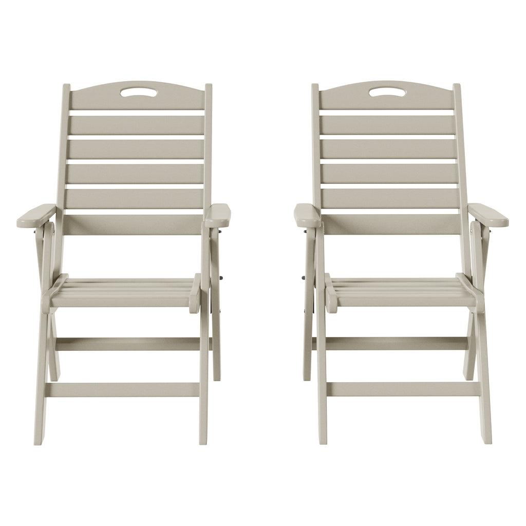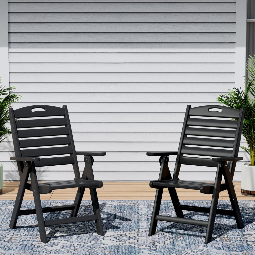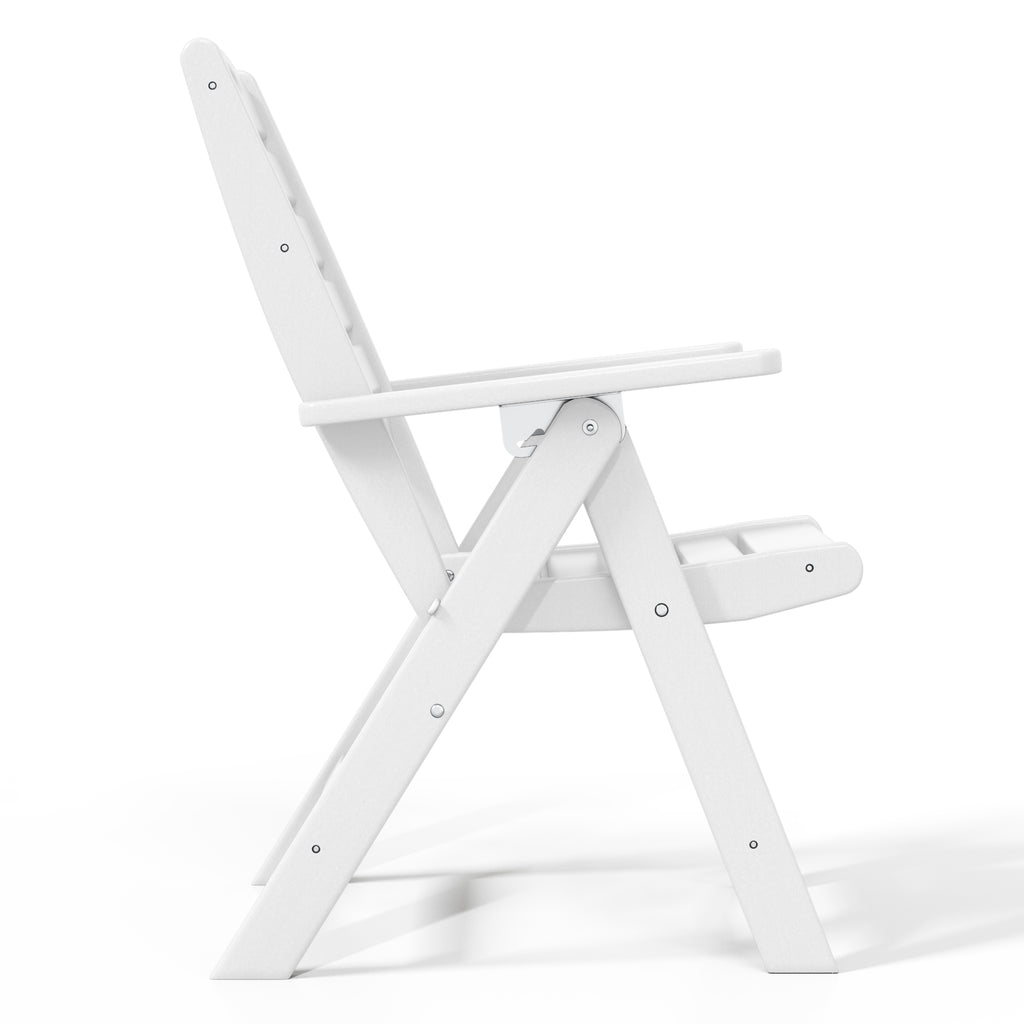 Savor every moment with this elegant Highback Folding Dining Chair, designed for both style and comfort. Crafted from durable, all-weather HDPE material, it’s built to withstand the elements, with UV and fade resistance ensuring lasting beauty season after season. After your meal, unwind with the adjustable backrest, offering four reclining positions for personalized relaxation. When the evening is over, effortlessly fold the chair for convenient storage, keeping your space neat and tidy.